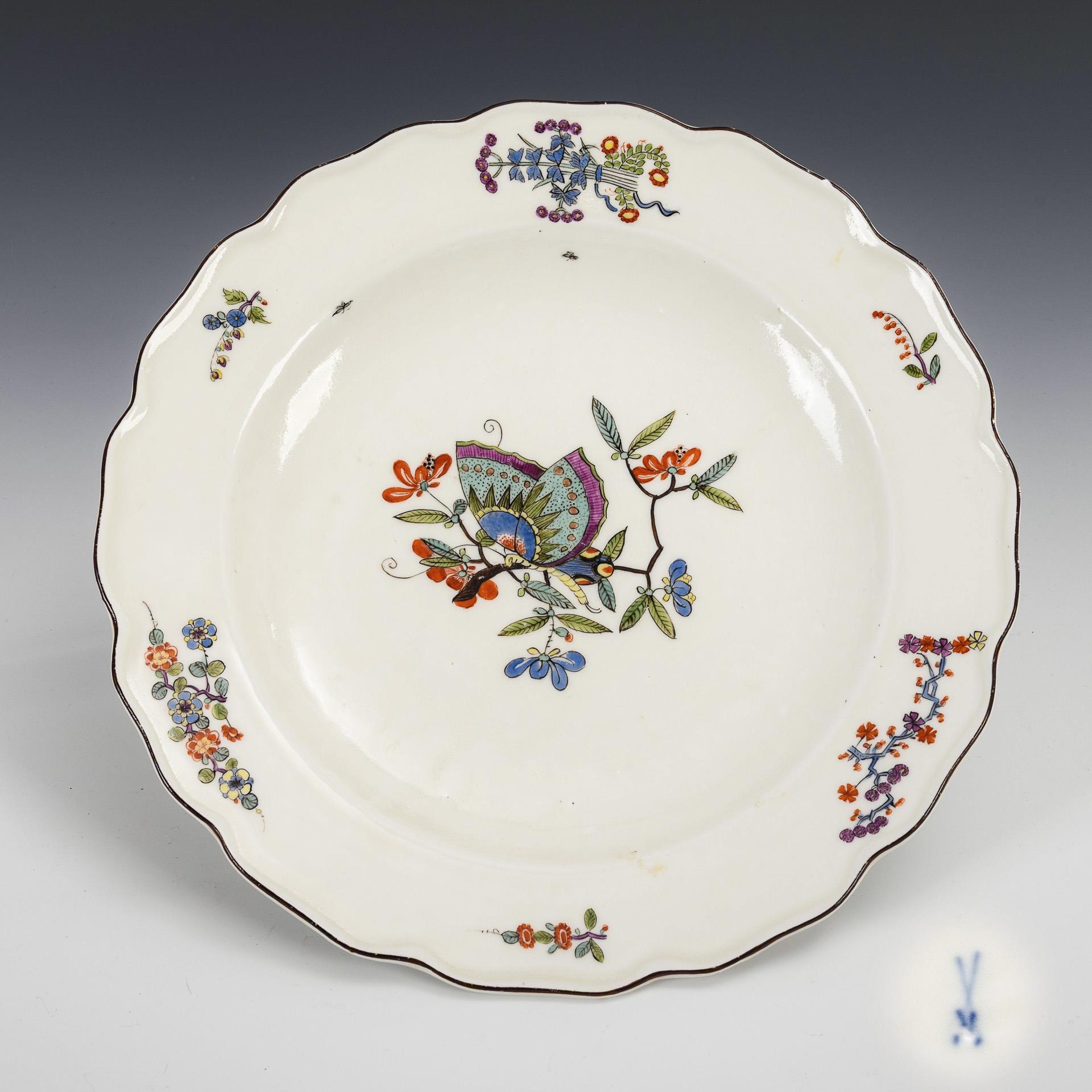 Baroque plate with Chinese butterfly painting. Meissen.