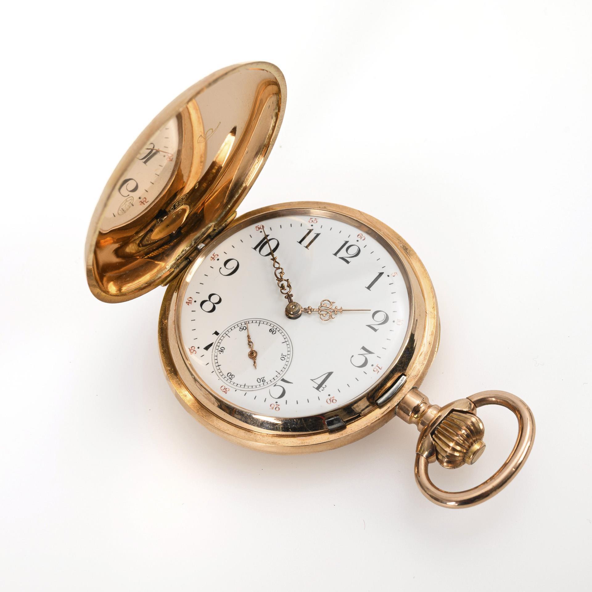 585 hallmarked, Swiss hallmark, hallmark of fineness, company mark, gold dust cover. Ø 5.2 cm. 98 g.