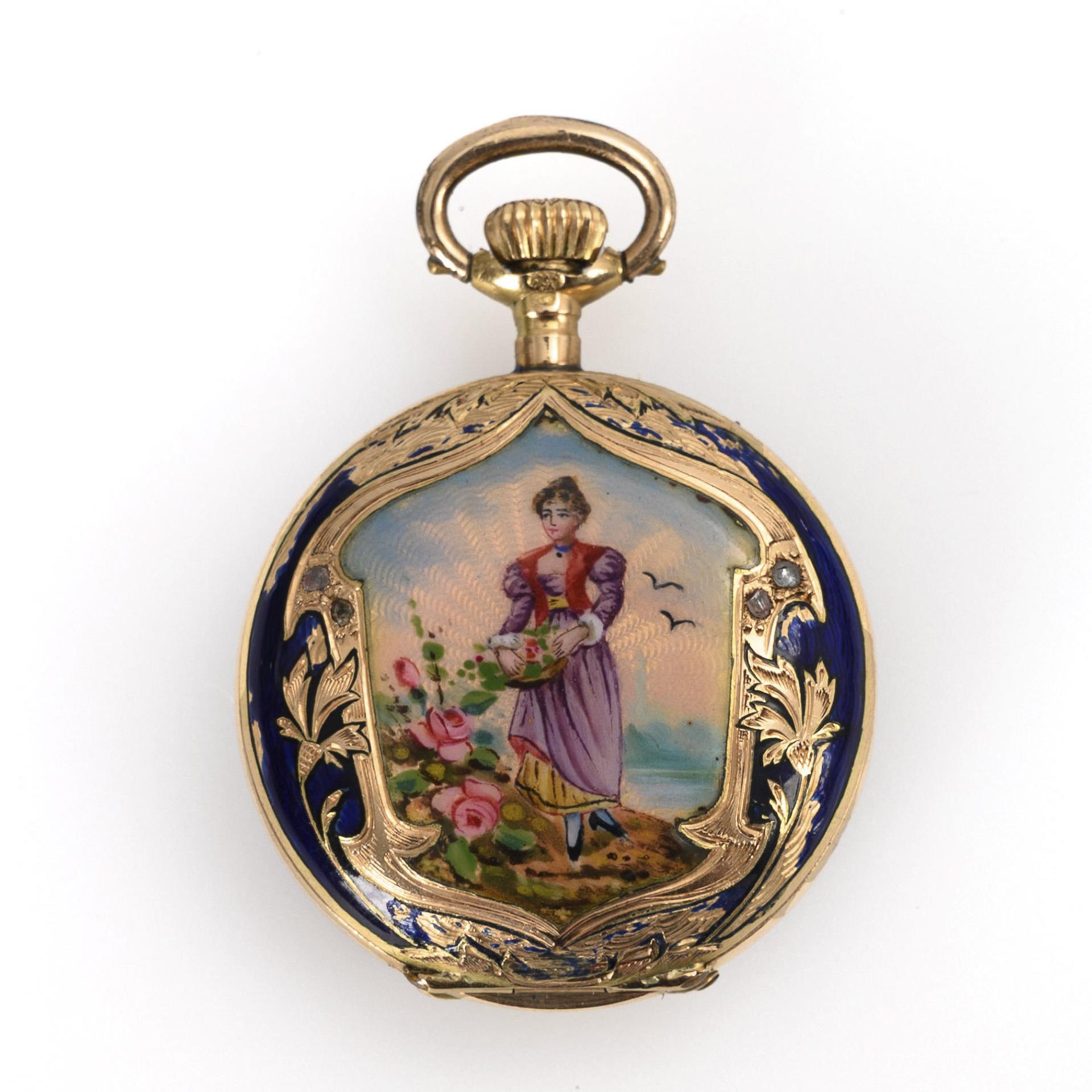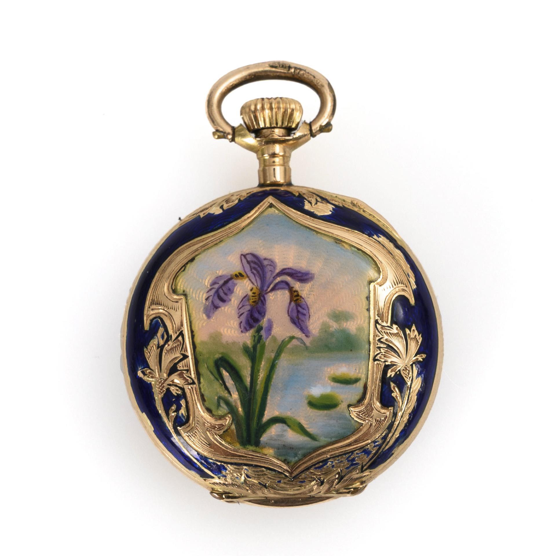 Artfully enameled Art Nouveau ladies' savonnette.