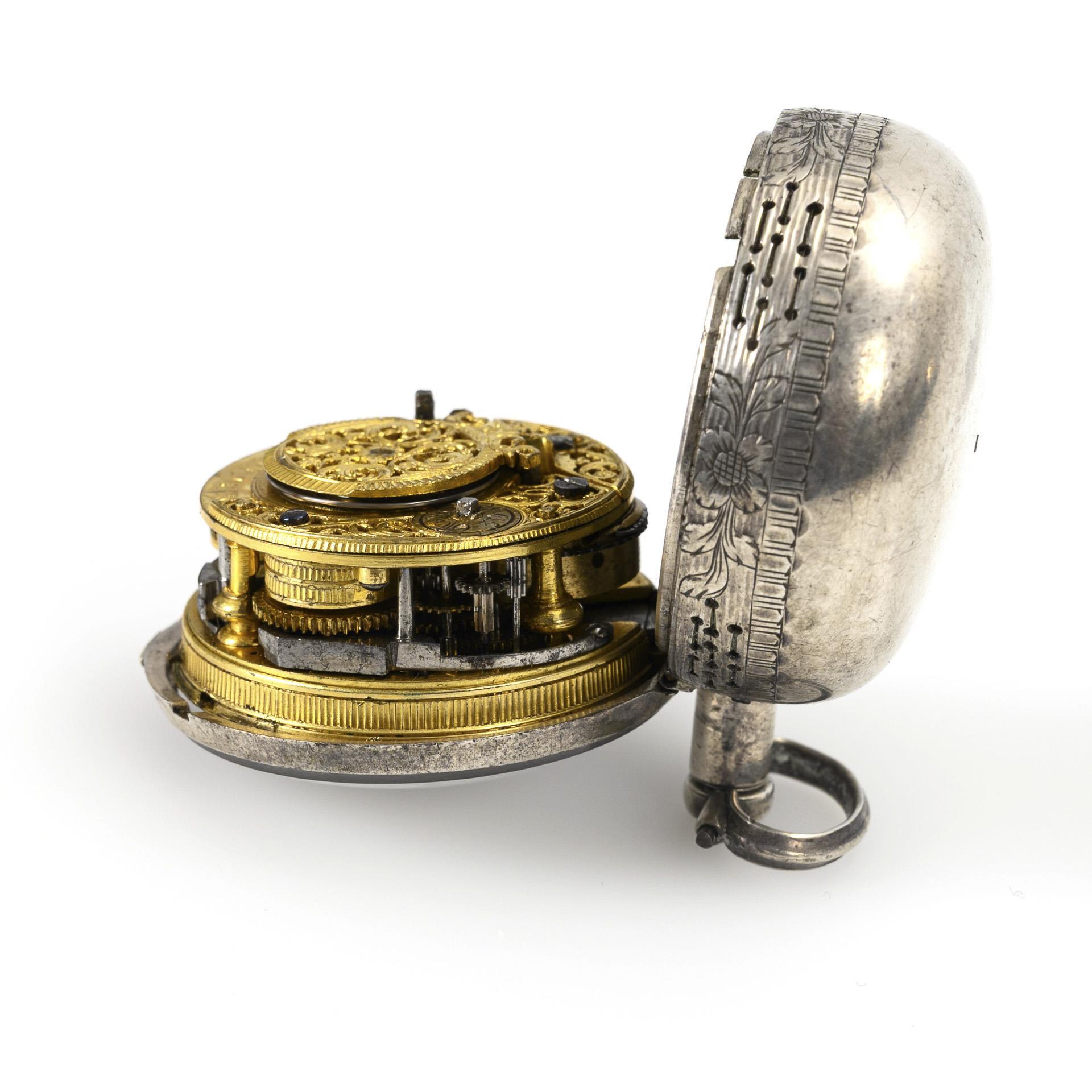 Baroque silver verge pocket watch with striking mechanism.