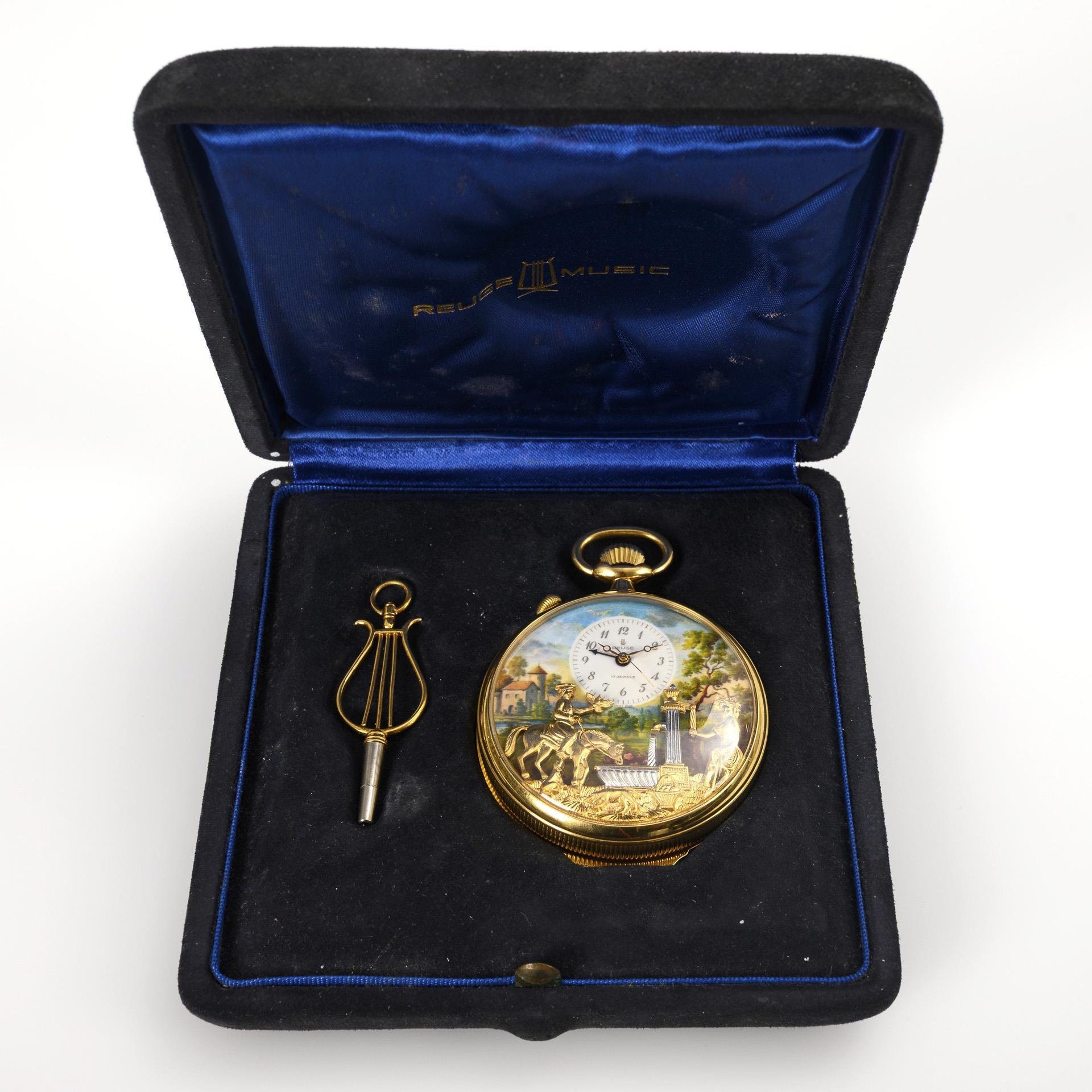 Pocket watch with figurine automaton, musical movement and alarm function "Brunnen"/"The Fountain". Charles Reuge.