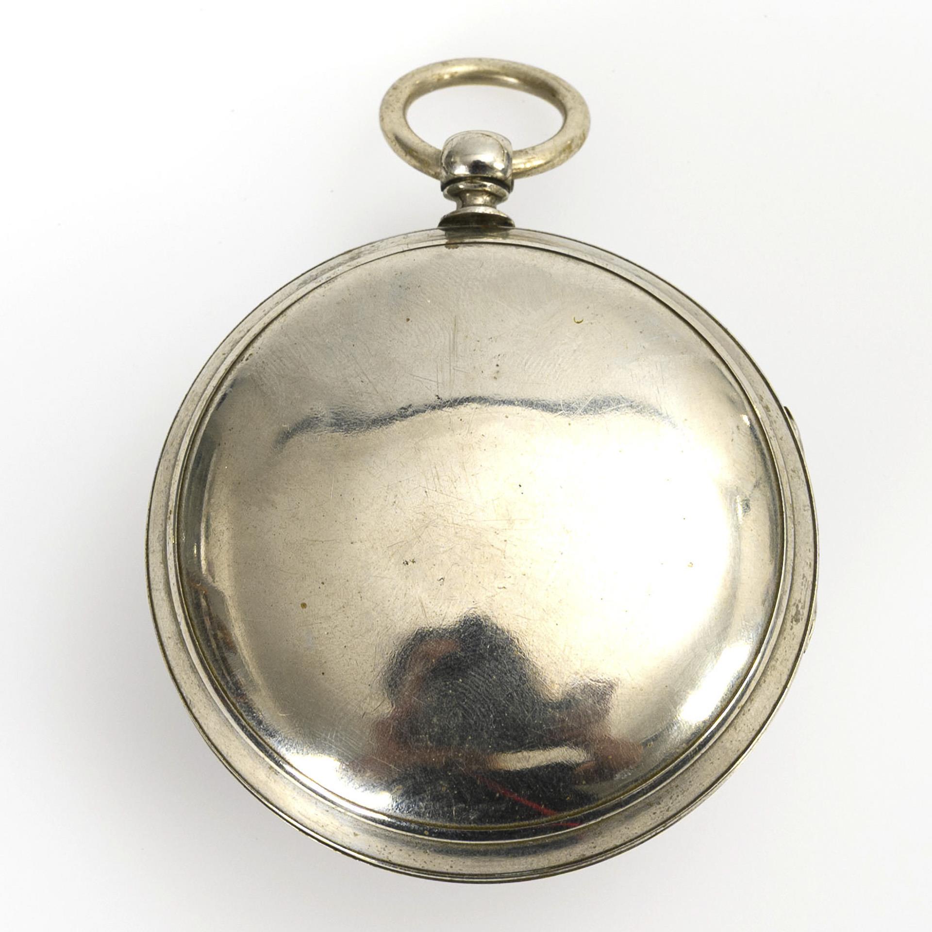 Smooth case with removable back cover and coin edge. Signs of age and wear.
