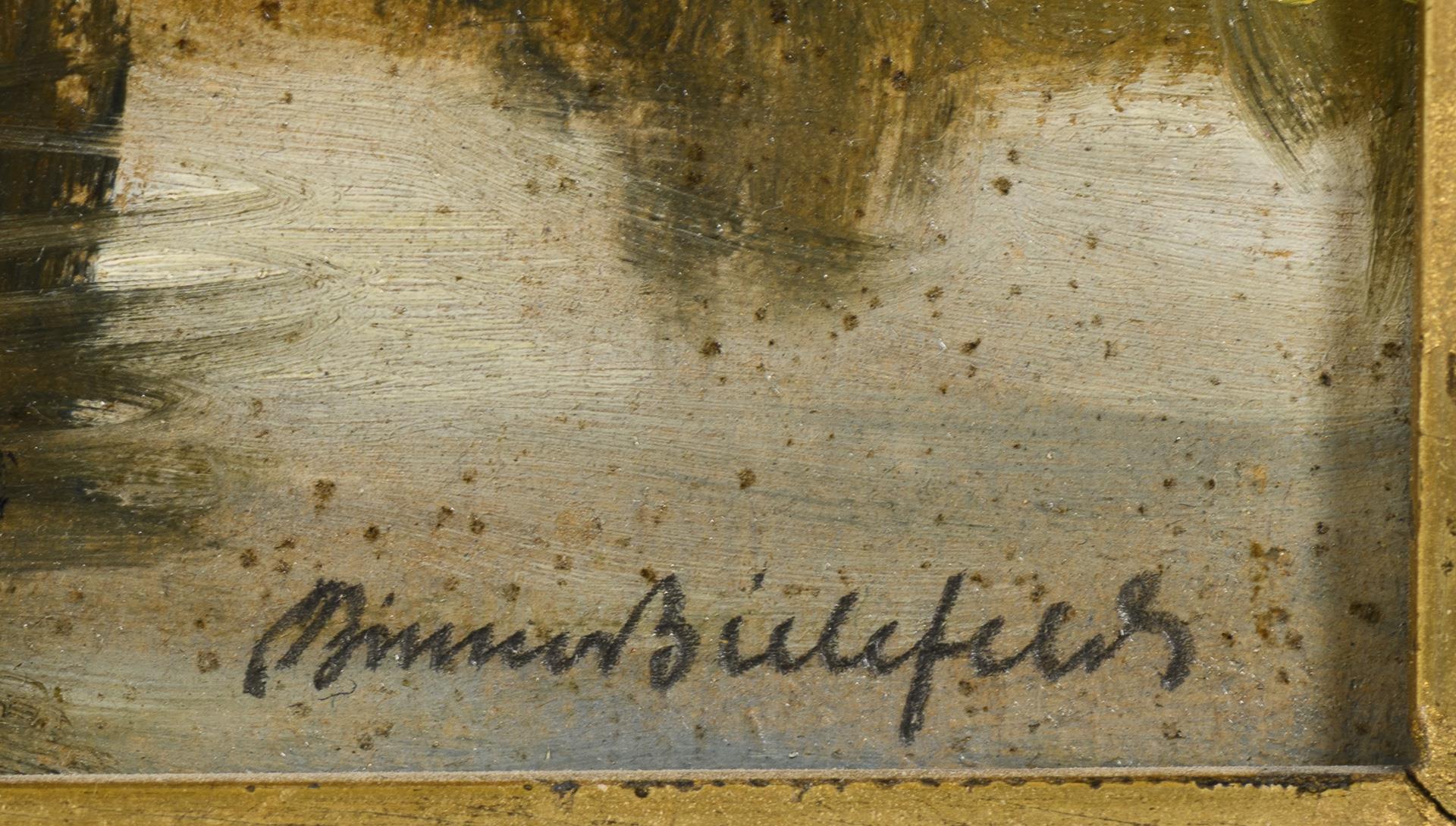 Oil/painting cardboard/wood. Signed lower right.