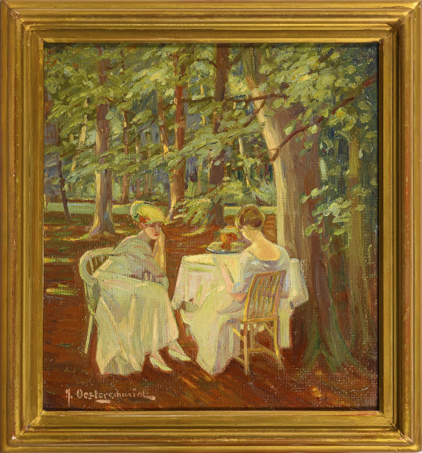 Art Nouveau park landscape with women