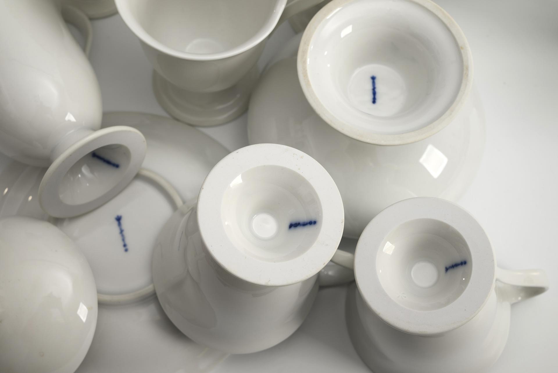 39 pieces. "Campaner" shape. Coffee pot (H 22 cm), milk jug (H 9 cm), sugar bowl (H 14 cm), 12 coffee cups, 12 saucers, 12 breakfast plates. Slight signs of wear on the plates.