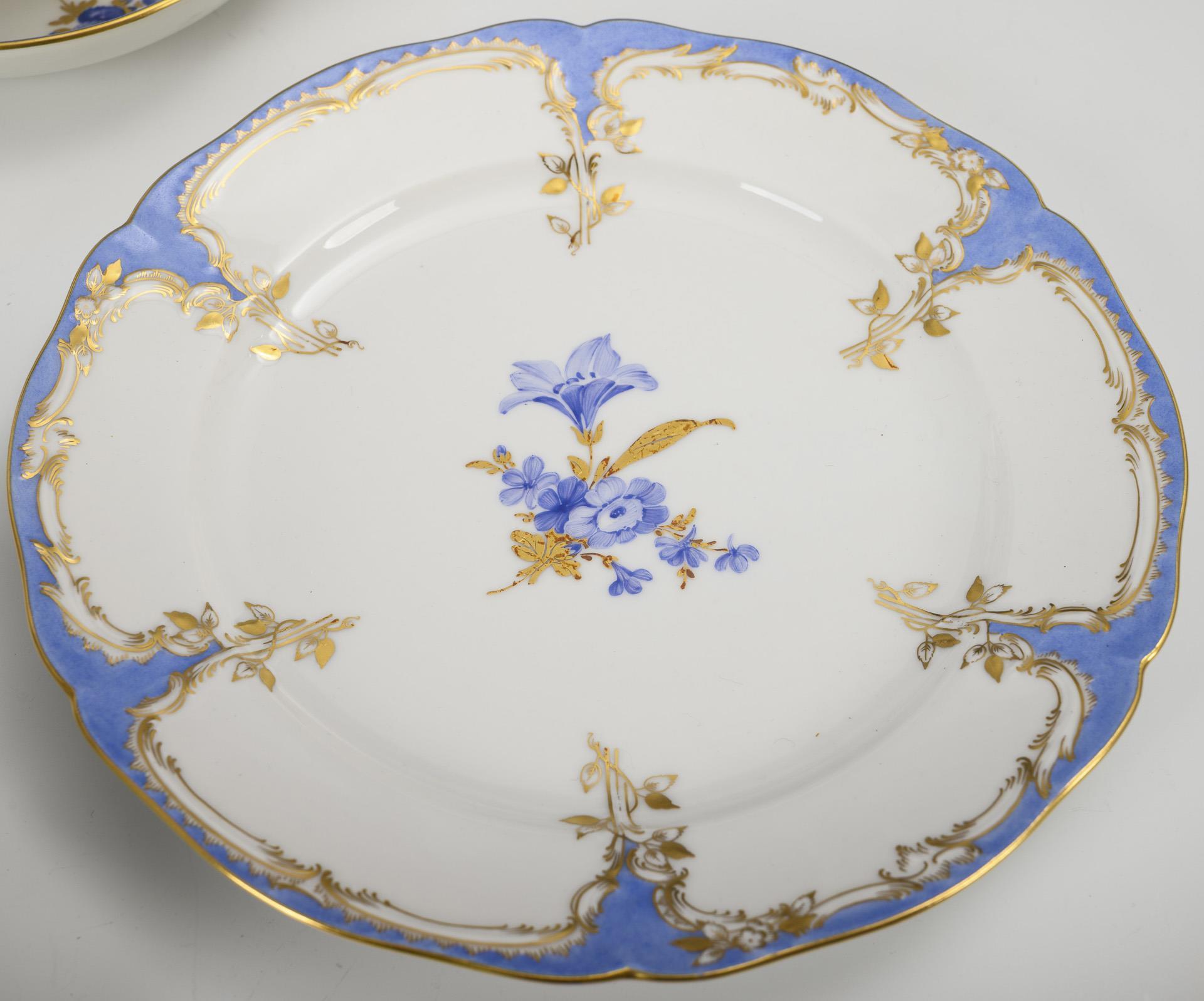 Light blue partial ground, blue flower painting and etched gold staffage. H max. 21.5 cm. 4 kg.