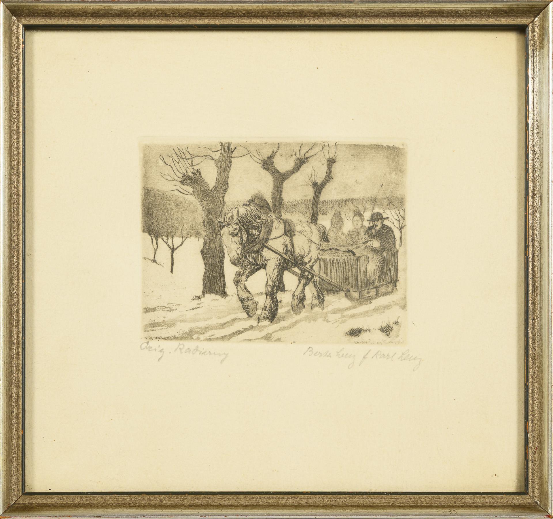4x Hans von Volkmann (1860 - 1927), all with pencil signature, including three etchings and one lithograph / 3x Hermann Kätelhöhn (1884 - 1940), etchings, all with pencil signature. / Theodor Matthei, Willingshausen (18)86, pencil drawing, old Swabian woman / Berta Lenz (1902 - 1994), winter sleigh ride, etching, pencil signature with dedication for Karl Lenz.
