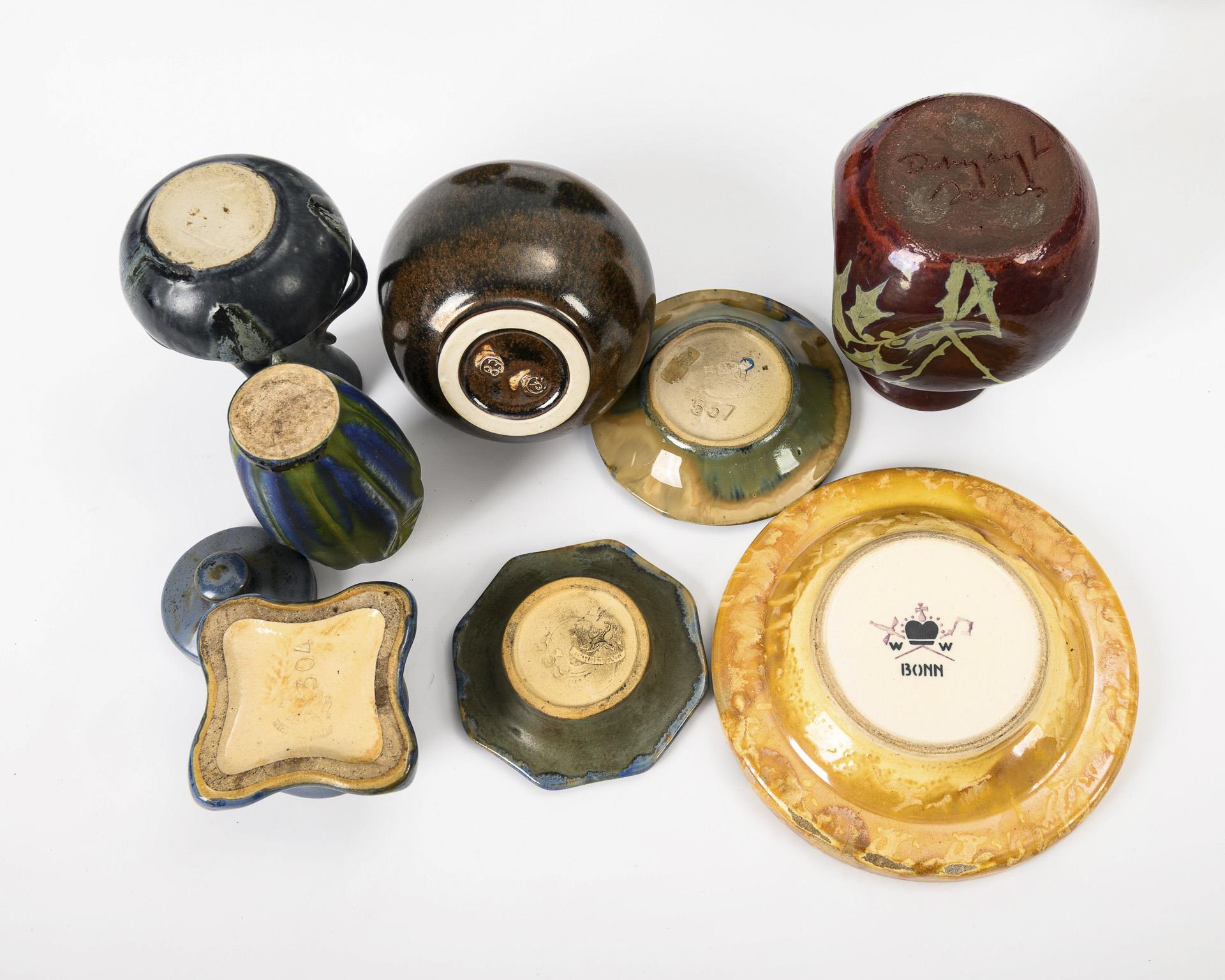 7 vases, 1 jug, 1 quatrefoil jug, 3 ashtrays. Partially minimally bumped.