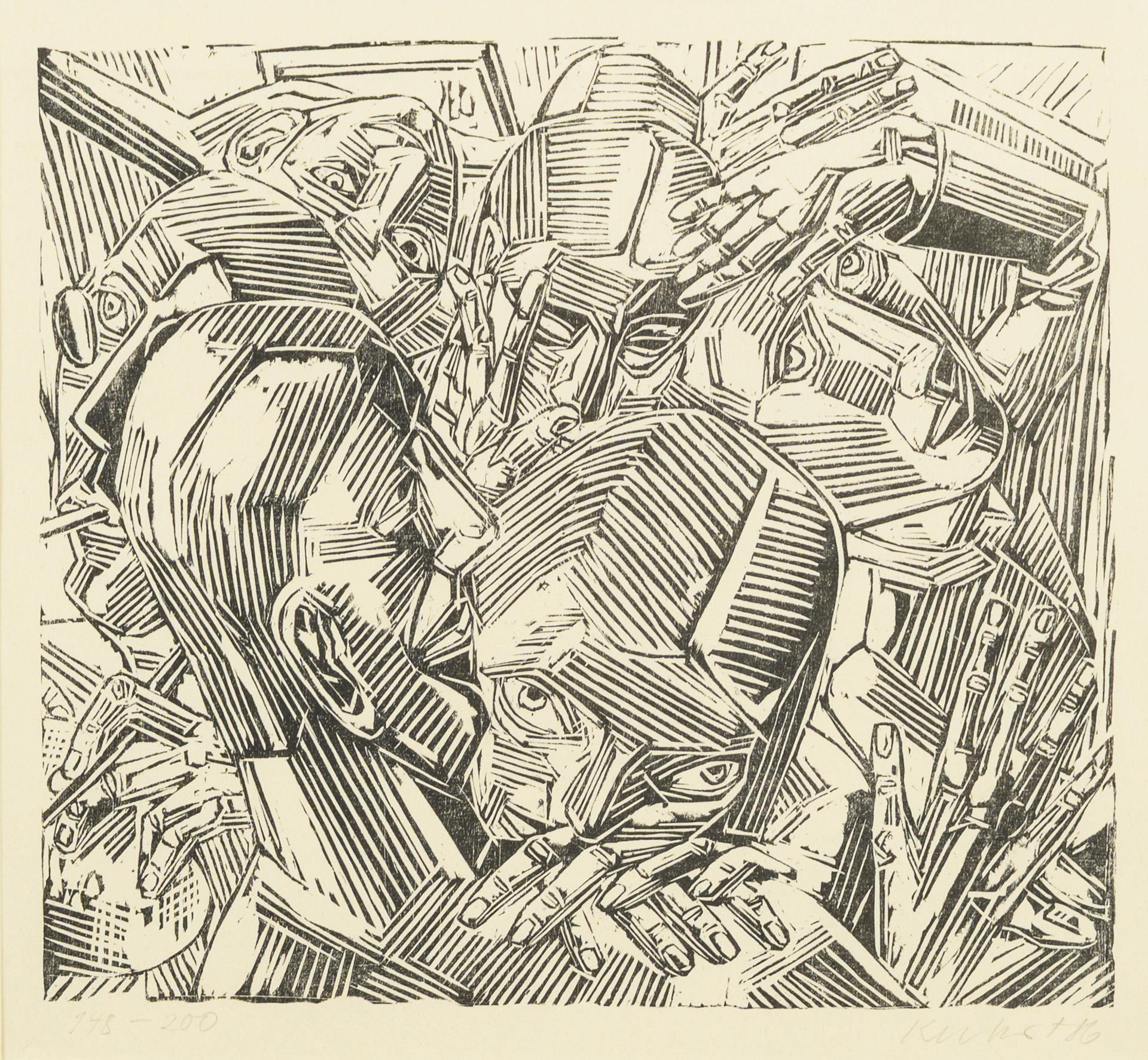 Woodcut. Pencil signature lower right. 1986.