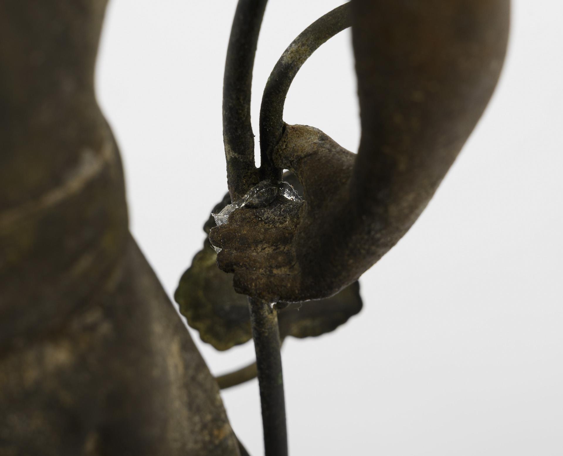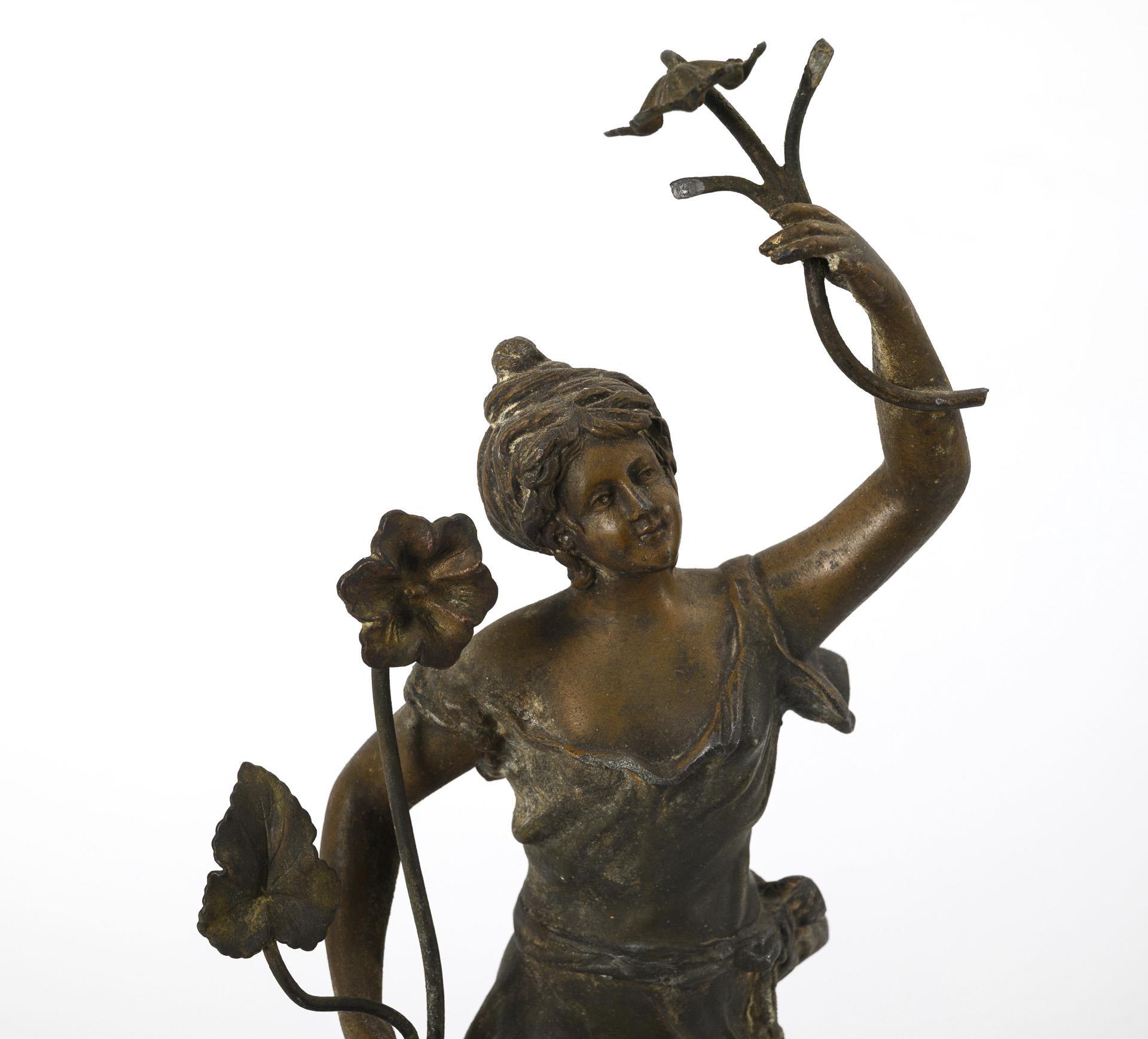 Stepped base with crowning allegory of spring and flowers. Signs of age and wear, some defects.