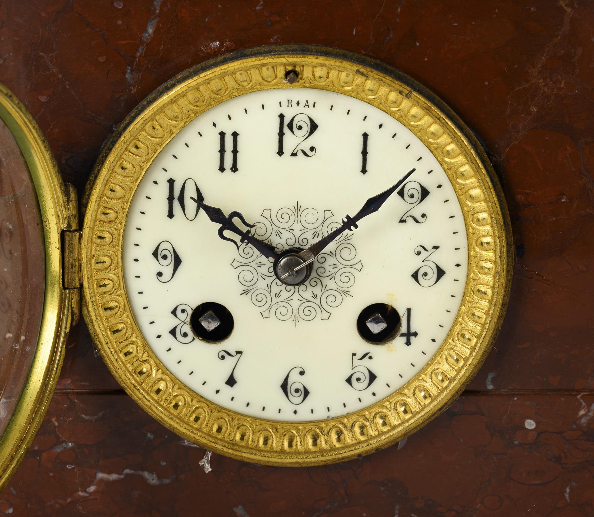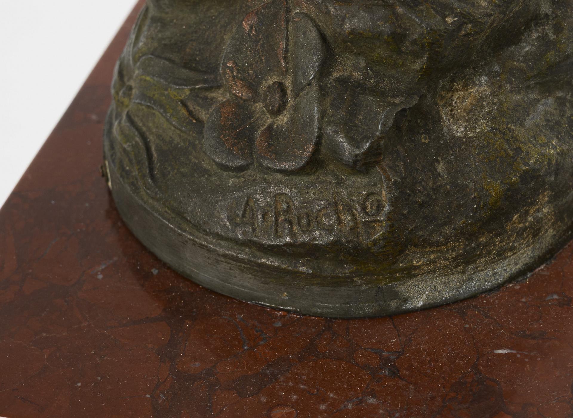 Bronzed cast metal, red marble. H 59 cm. 6.6 kg.