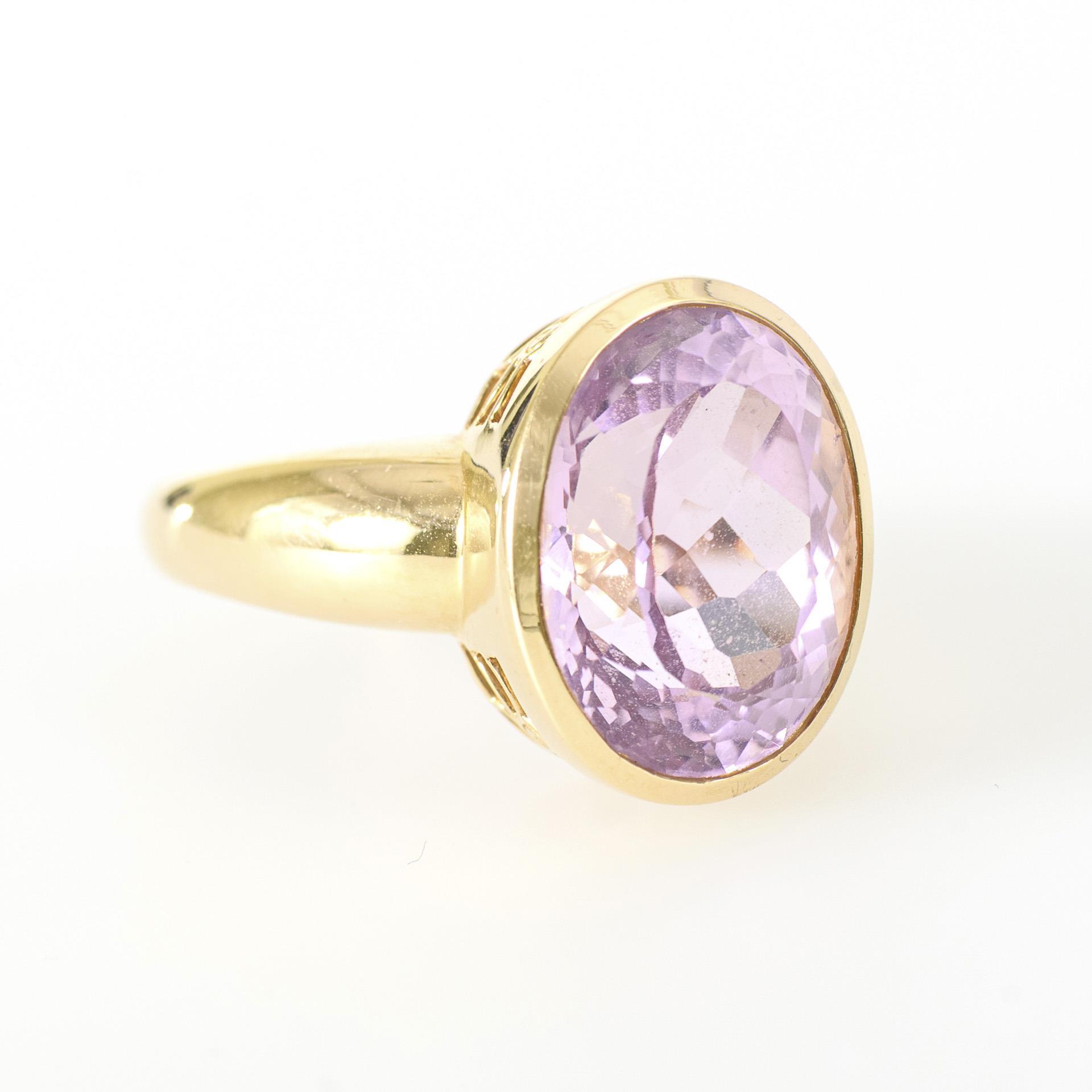 Ring with pink colored stone, probably kunzite.