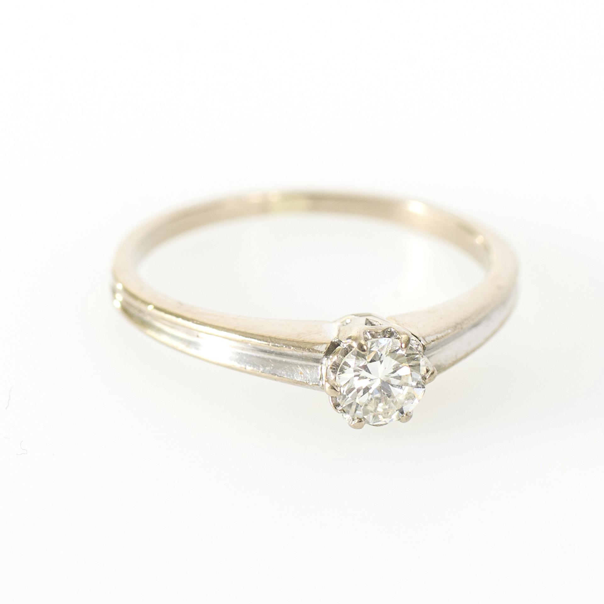 Stamped 750 white gold. Ring size 56; diameter of the brilliant-cut diamond (measured in the setting) approx. 0.4 cm. 3,2 g.