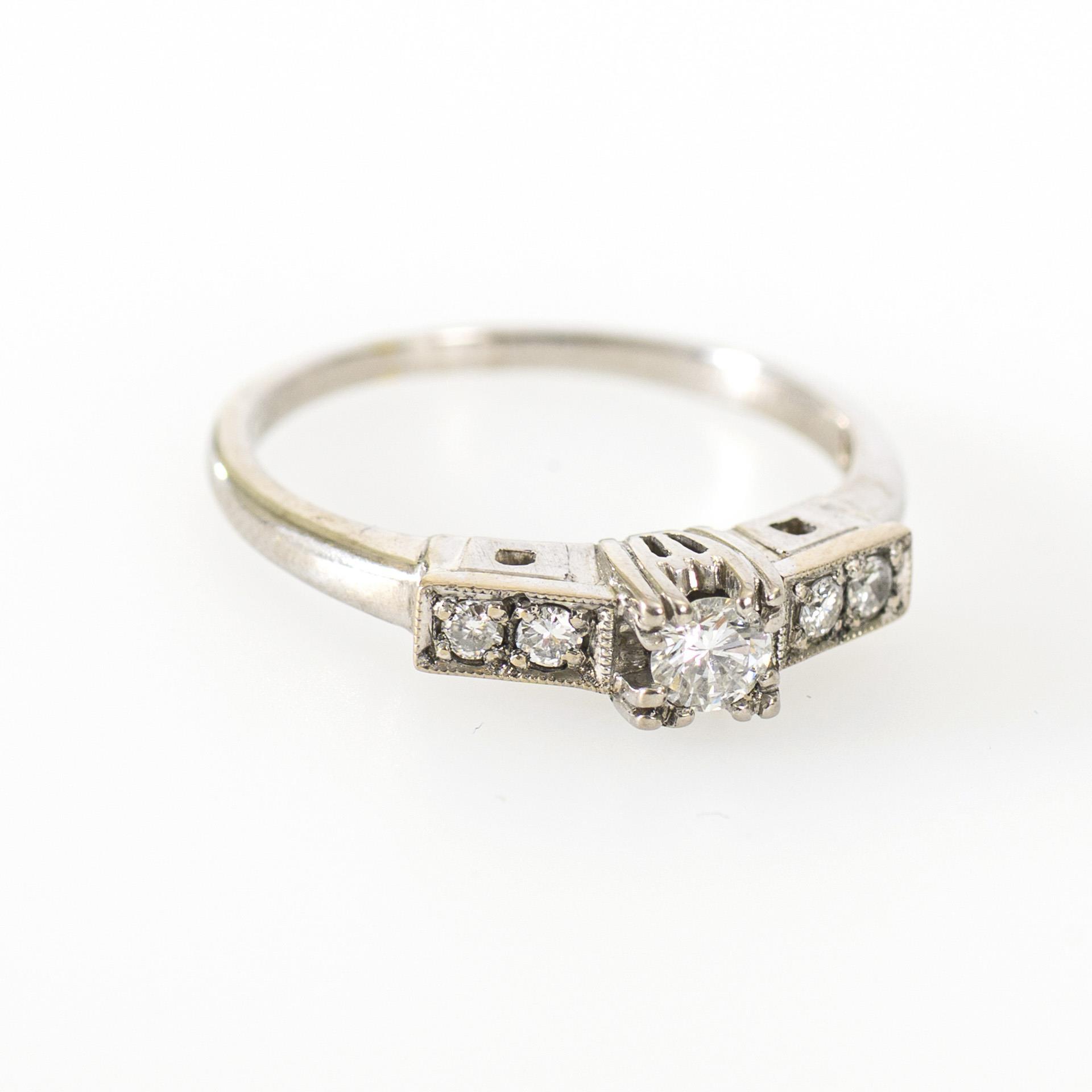 Stamped white gold 590. Ring size 57. 4,0 g.