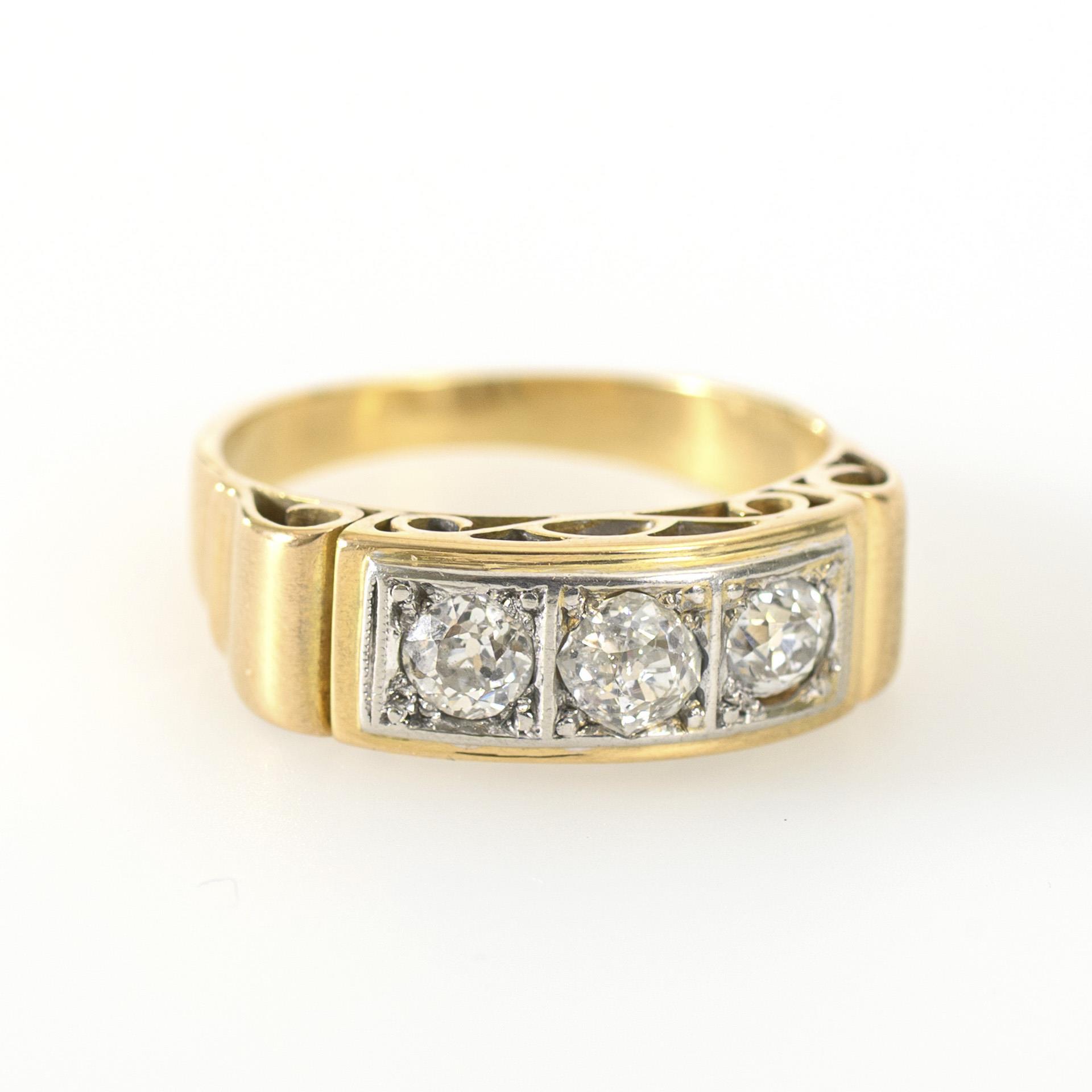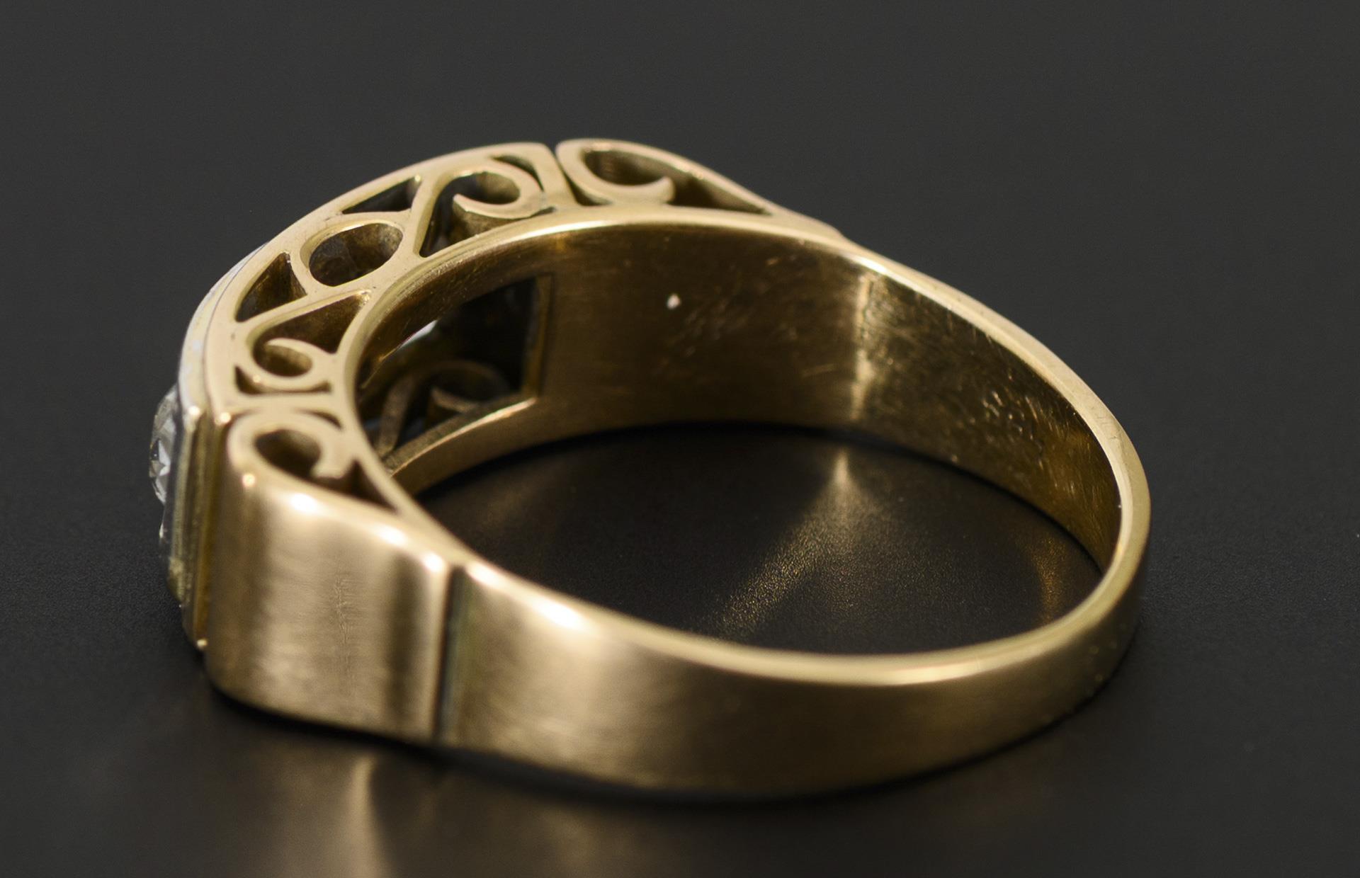 Elegant trilogy-ring of the late Art Déco period with open-worked design of the ring head.