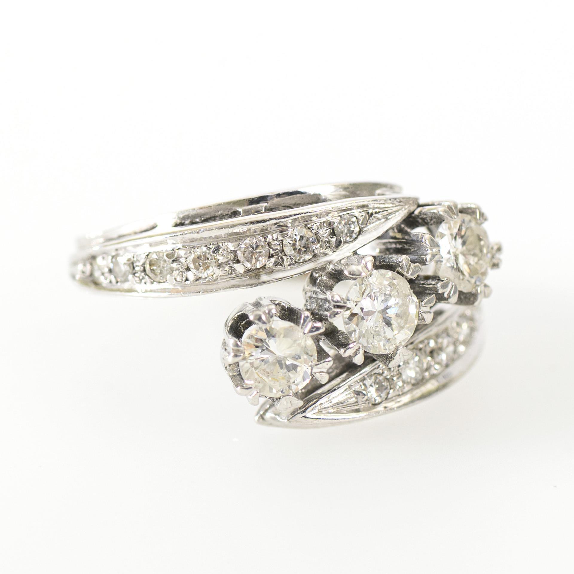 Stamped white gold 585. Ring size 54.5; diamonds together approx. 0.87 ct/H-I/2x P2-P3, the rest VS-P1. 4,36 g.