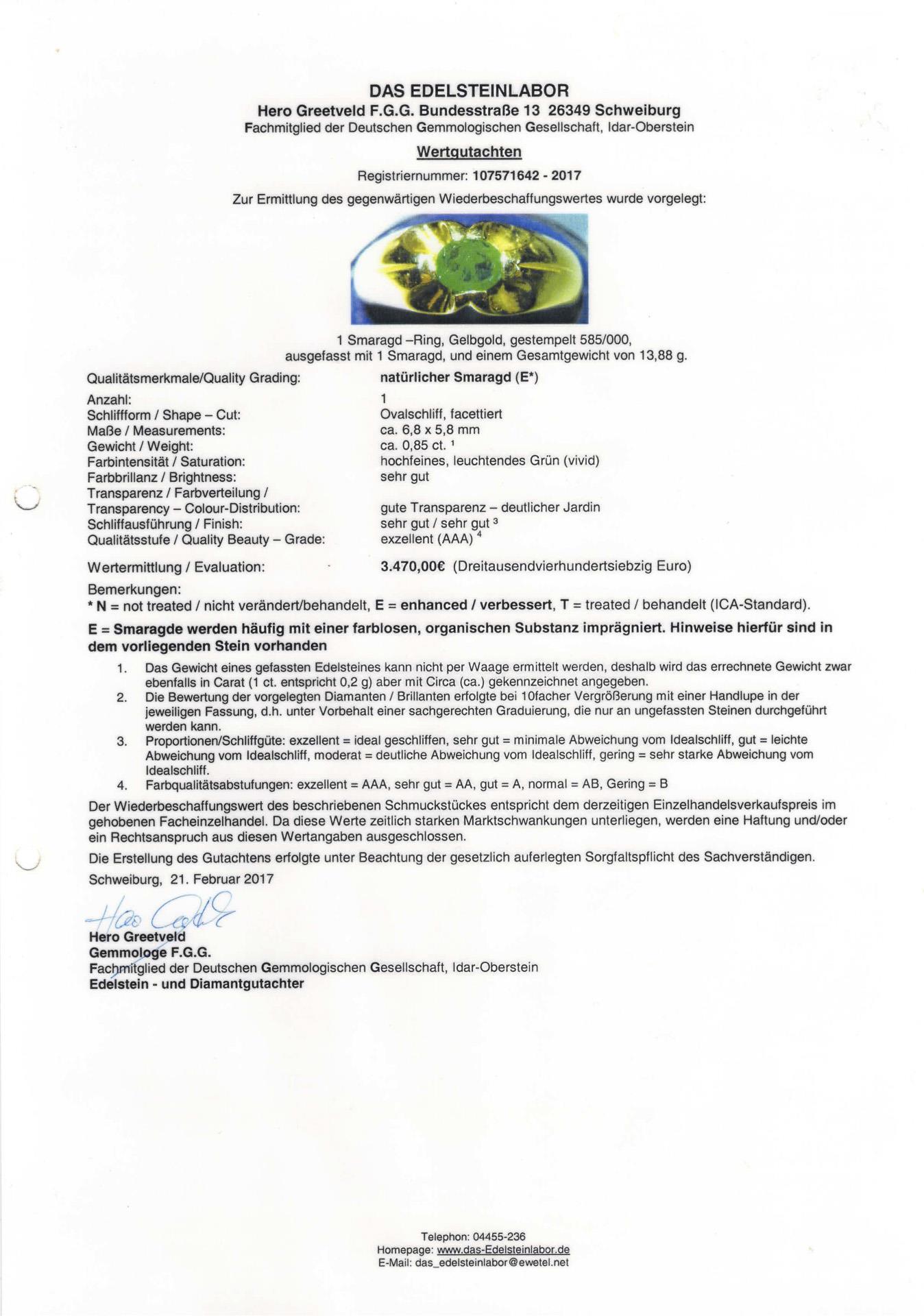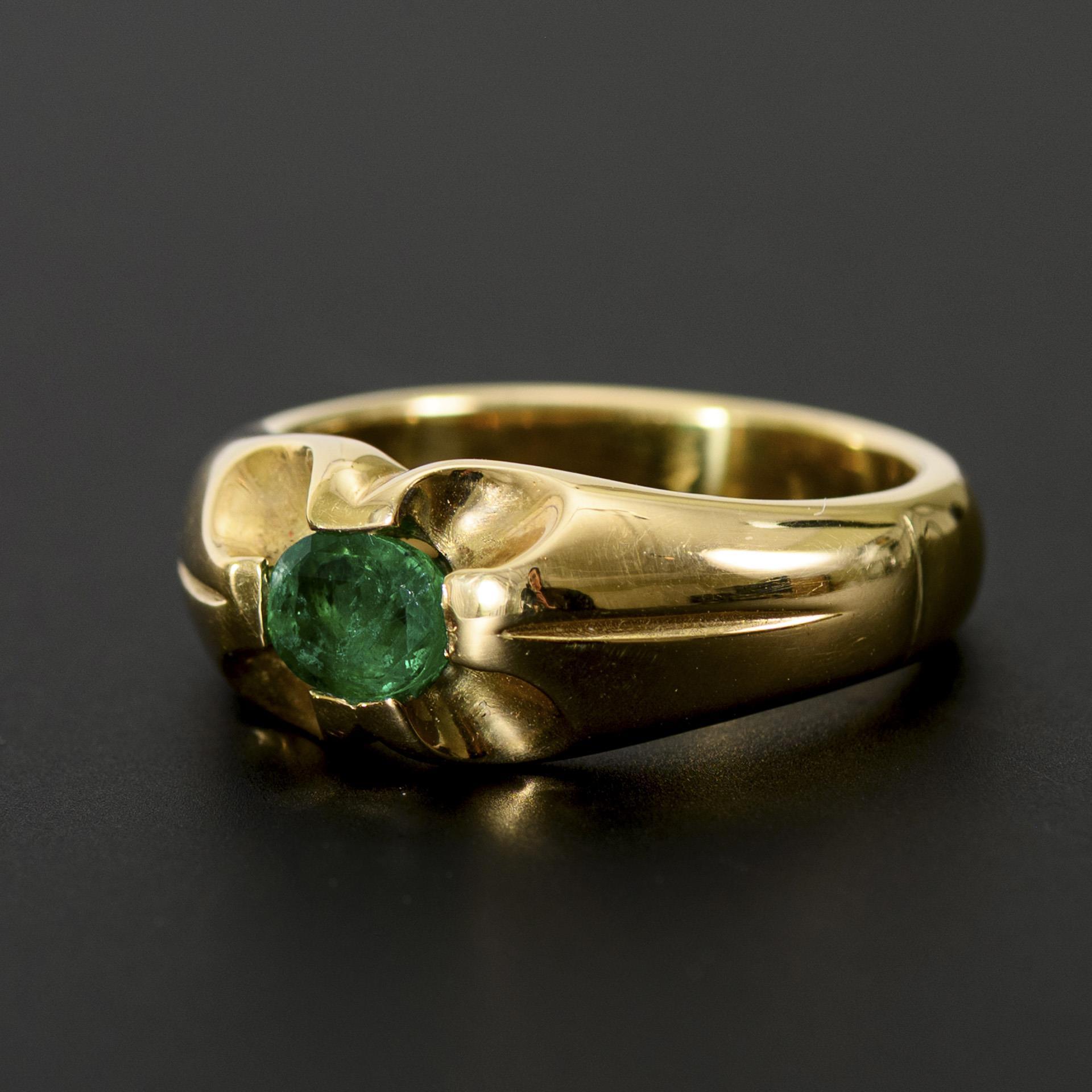 Marked yellow gold 585. Ring size 61; emerald approx. 0.85 ct/vivid/good transparency-clear jardin/AAA. 13,88 g.
