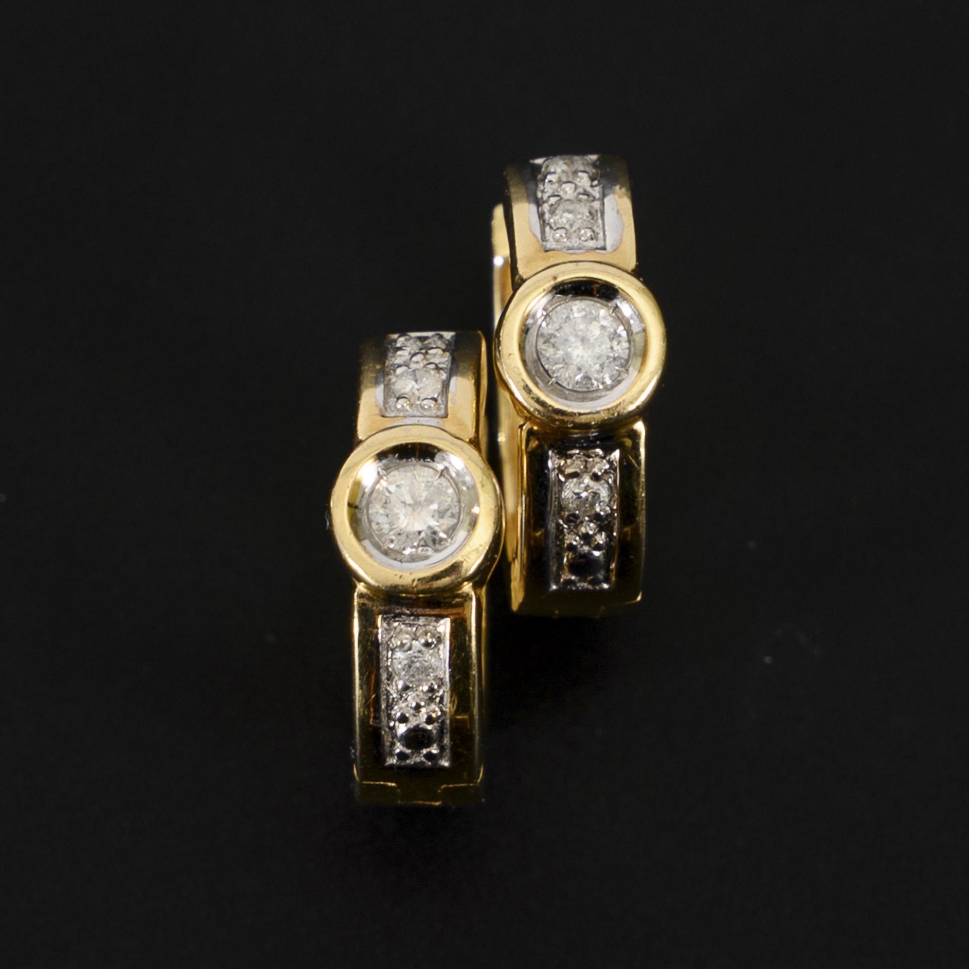 Each stamped in yellow and white gold 585. Inner diameter each approx. 11, outer diameter each max. approx. 16 mm. Together 4.7 g.