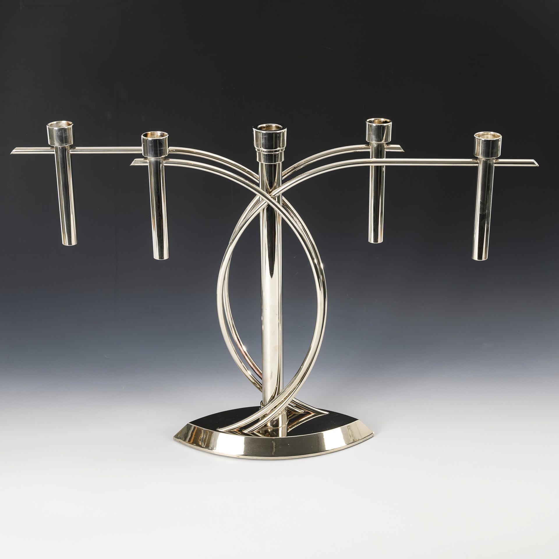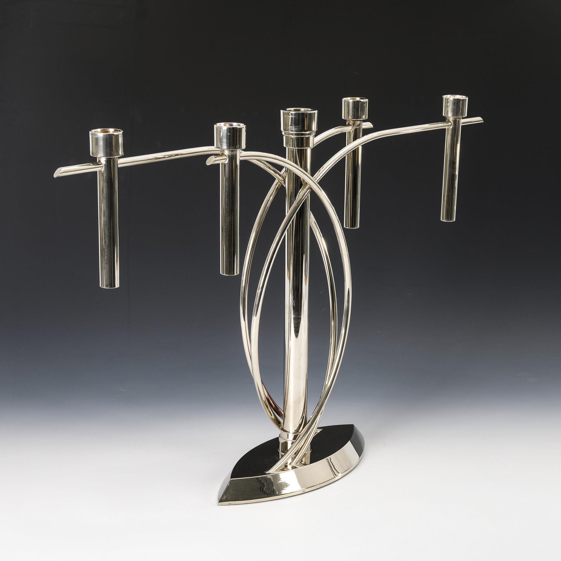 Model: Aura. Classically curved 5-flame candlestick. Arm tips minimally bumped.