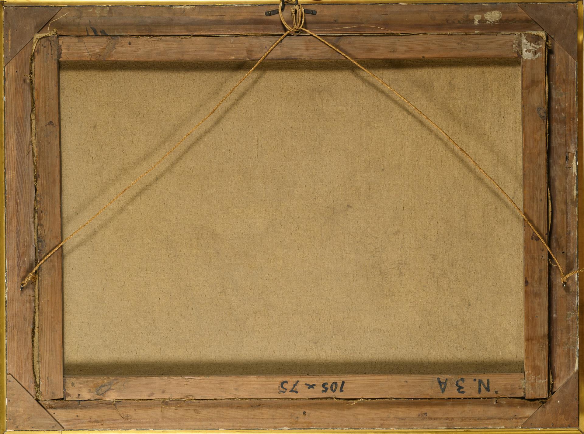 76 x 106 cm. Framed : 93 x 123 cm (gold stucco frame); 10.4 kg.