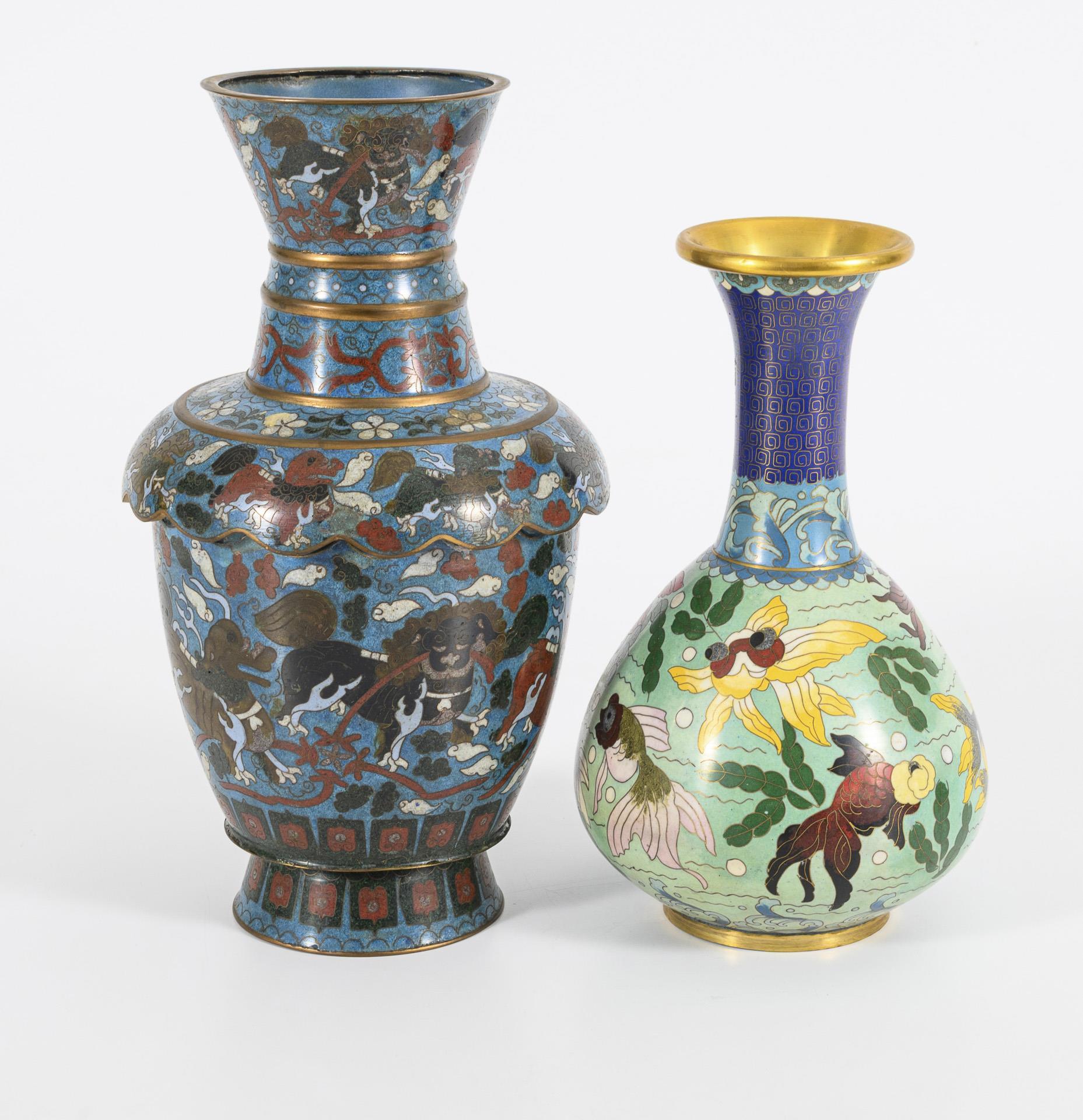 2 cloisonné vases.