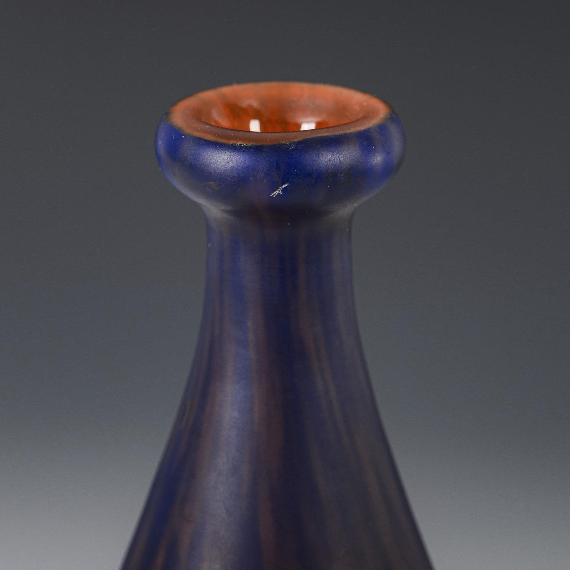 Slim pear shape with flared stand and widened mouth; dislocated neck.