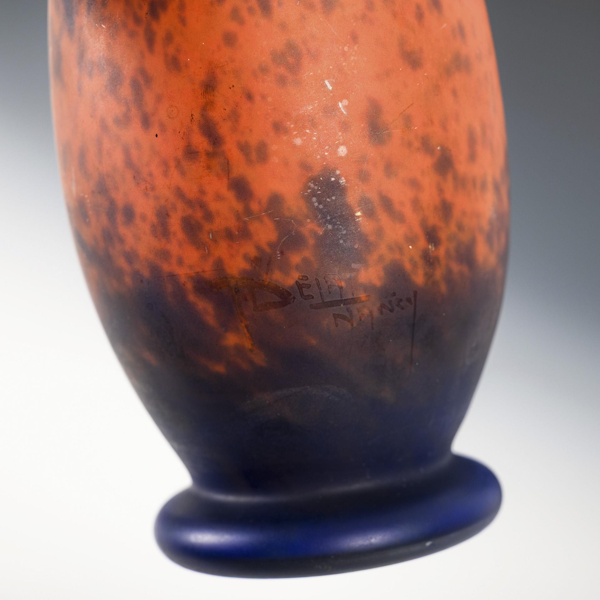 Colorless glass with blue and orange-red powder meltings in the intermediate layer. H 26 cm. 700 g.