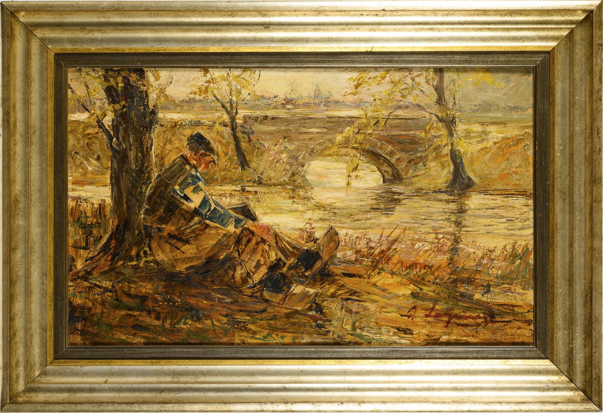 Sitting man on the riverbank
