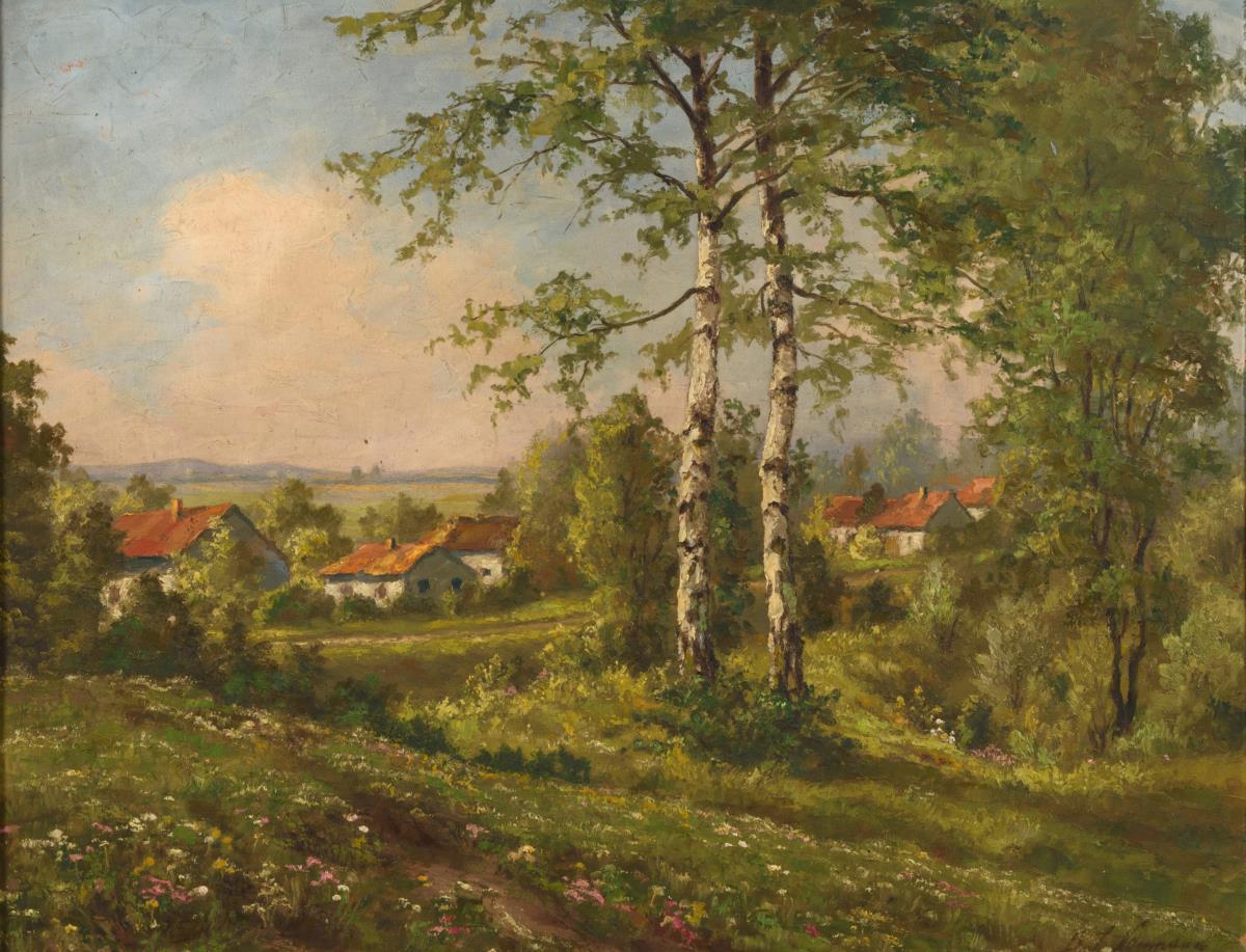 Undeutlich signiert: Am Dorfrand