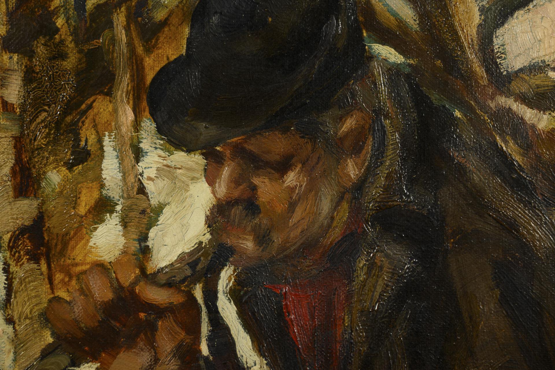 The man with the prey animal and a lit pipe on his way home on autumnal hills.