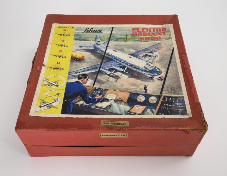 Large Pan American machine, for battery operation. With instructions and original box. Some wear, function not tested. Box with defects.