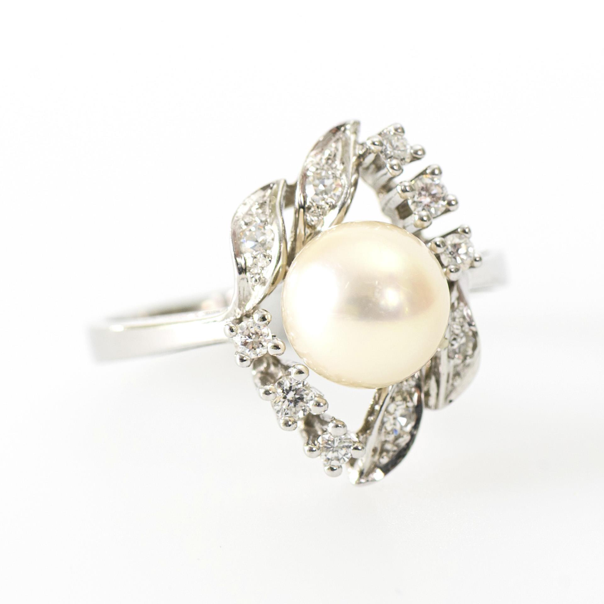 Ring with small brilliant-cut diamonds and pearl.