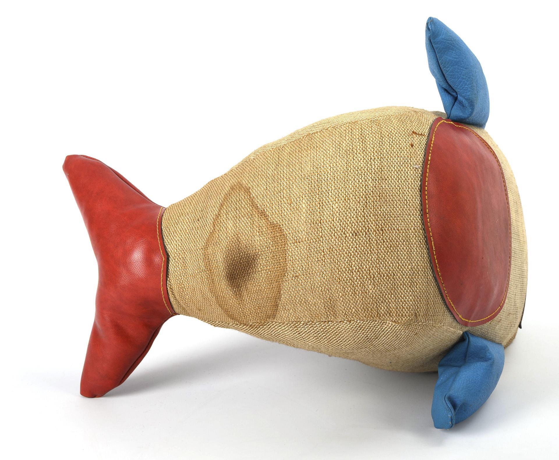 Plucking, red imitation leather and blue leather. H 50 cm, L 52 cm. 4.7 kg.