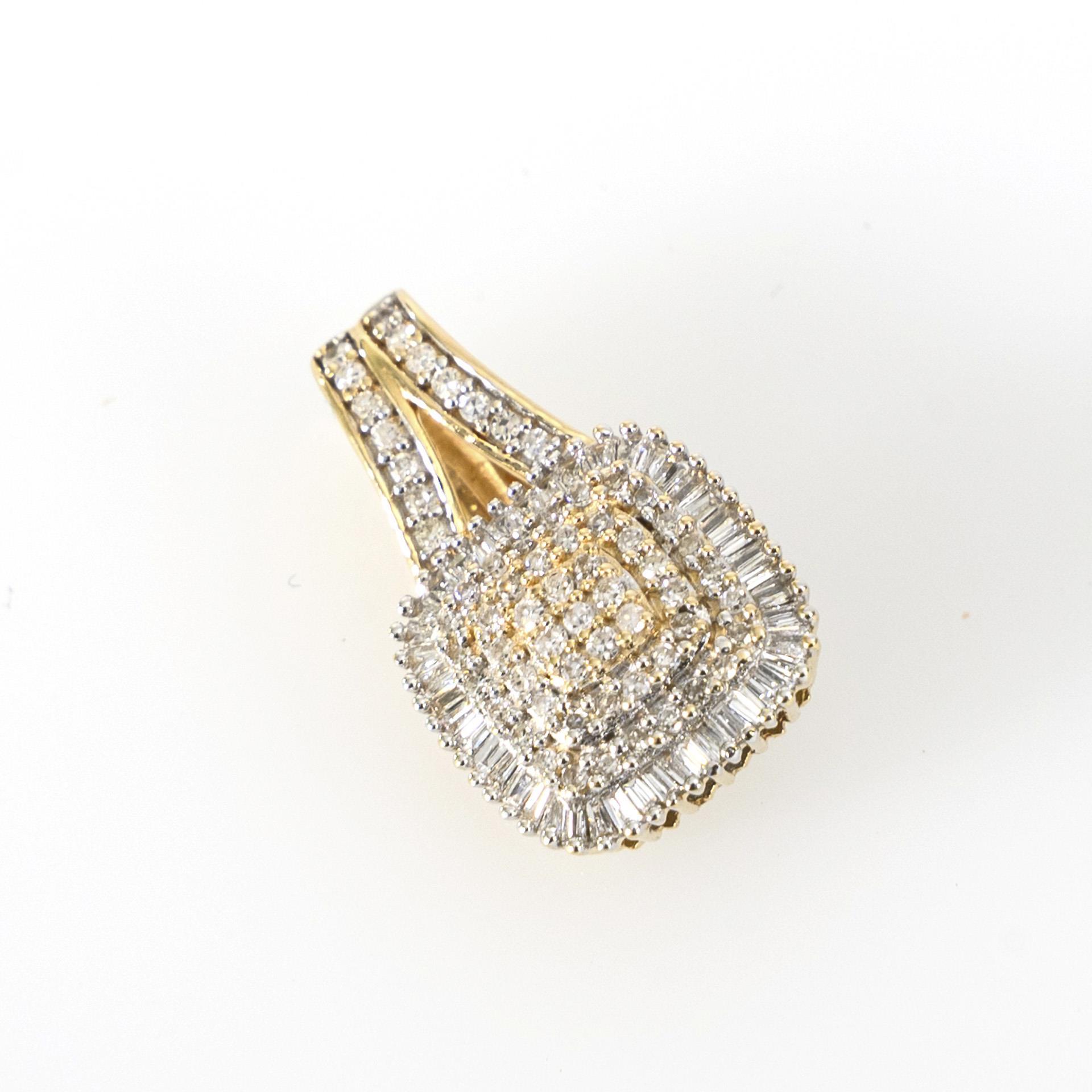 High-quality clip pendant with brilliant-cut diamonds and baguette-cut diamonds.