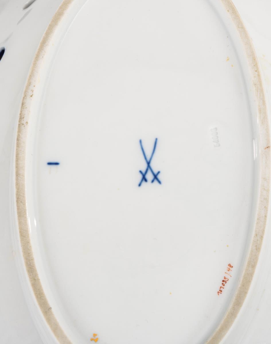 Kobaltblauer Teilfond, polychrome Blumenmalerei, Goldstaffage.