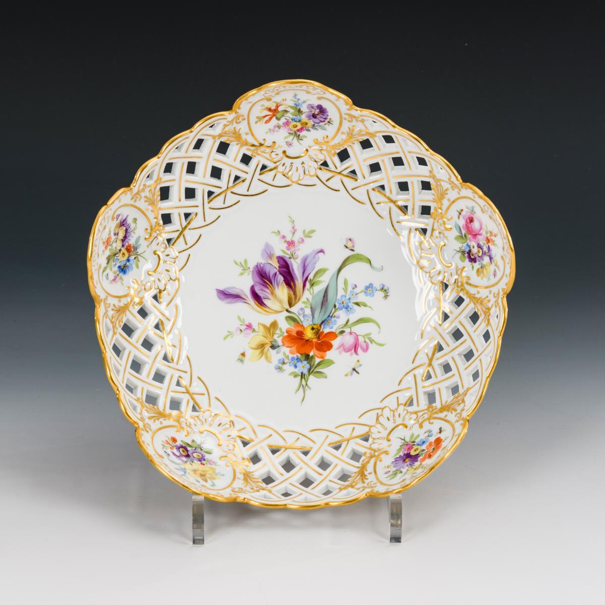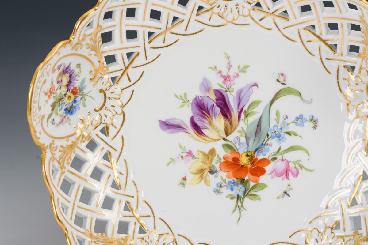 Durchbruchschale mit Blumenmalerei.