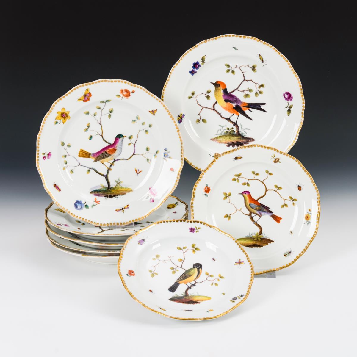 8 Teller mit Vogelmalerei.