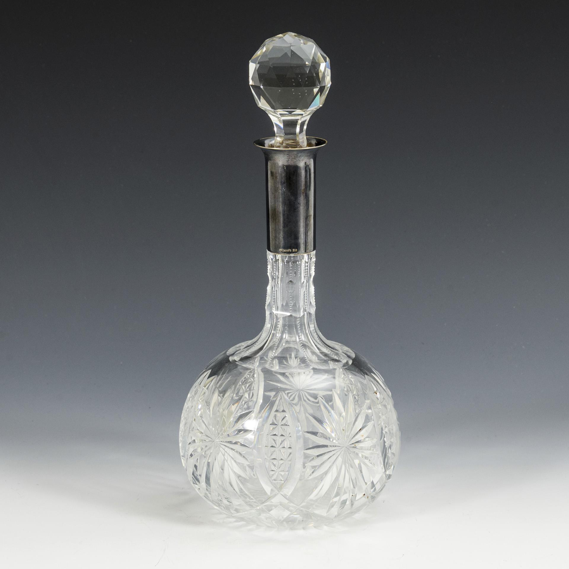 Crystal glass carafe with silver mount. Wilhelm Binder, Schwäbisch Gmünd.