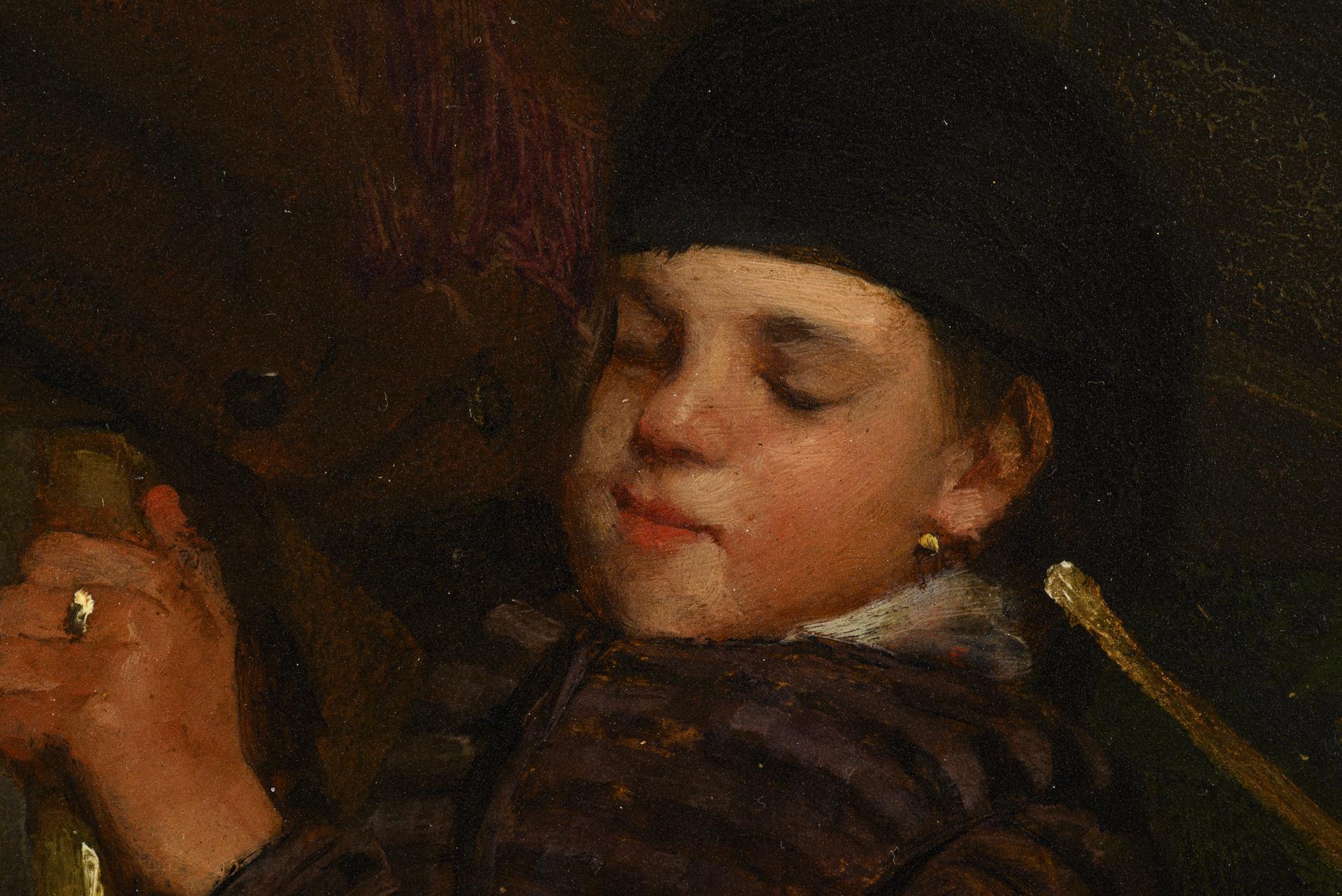 The rascal annoying his sleeping sister with a stick. Slight traces of age.