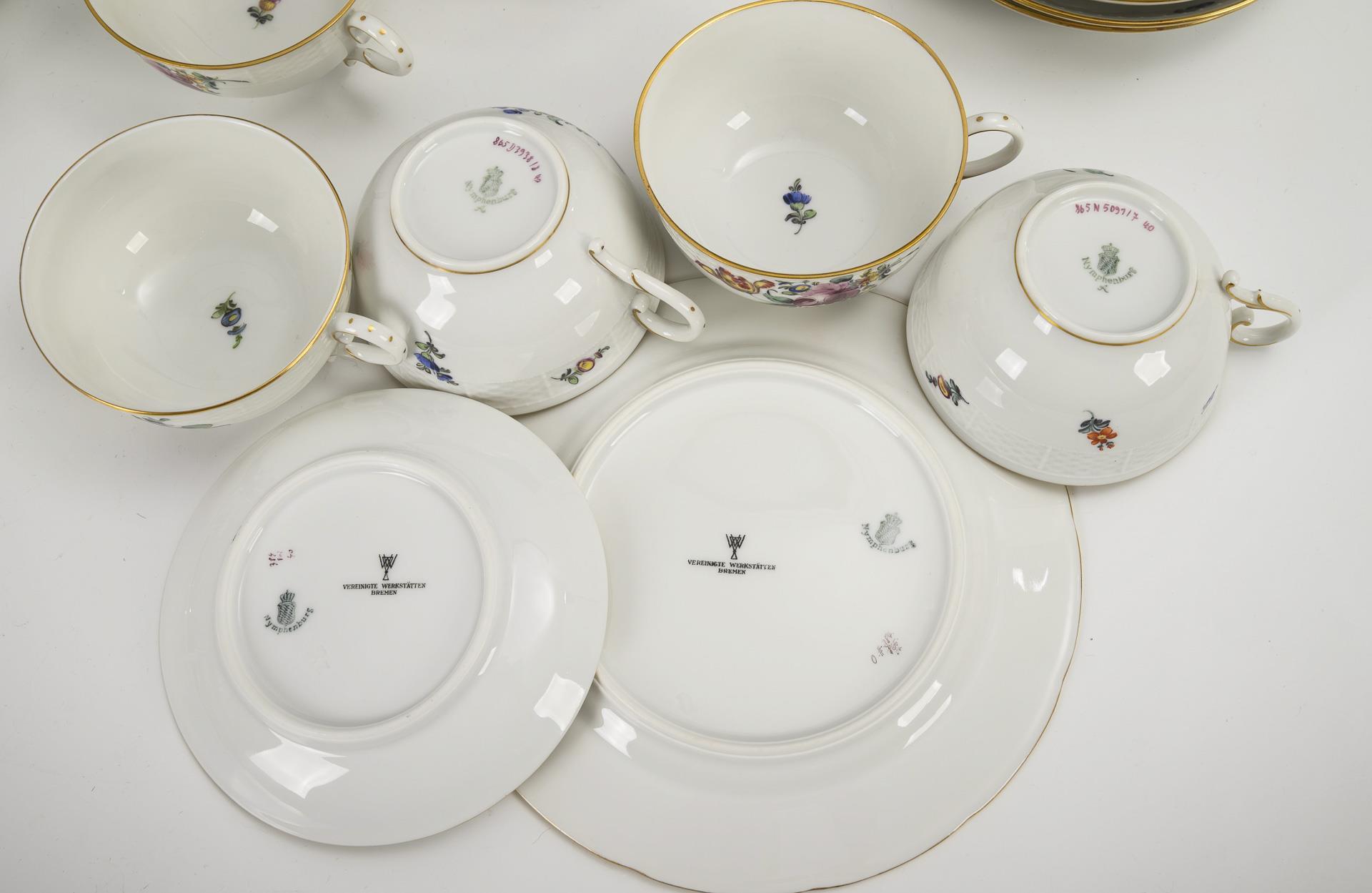 31 pieces of a coffee and tea service with flower painting. Nymphenburg.