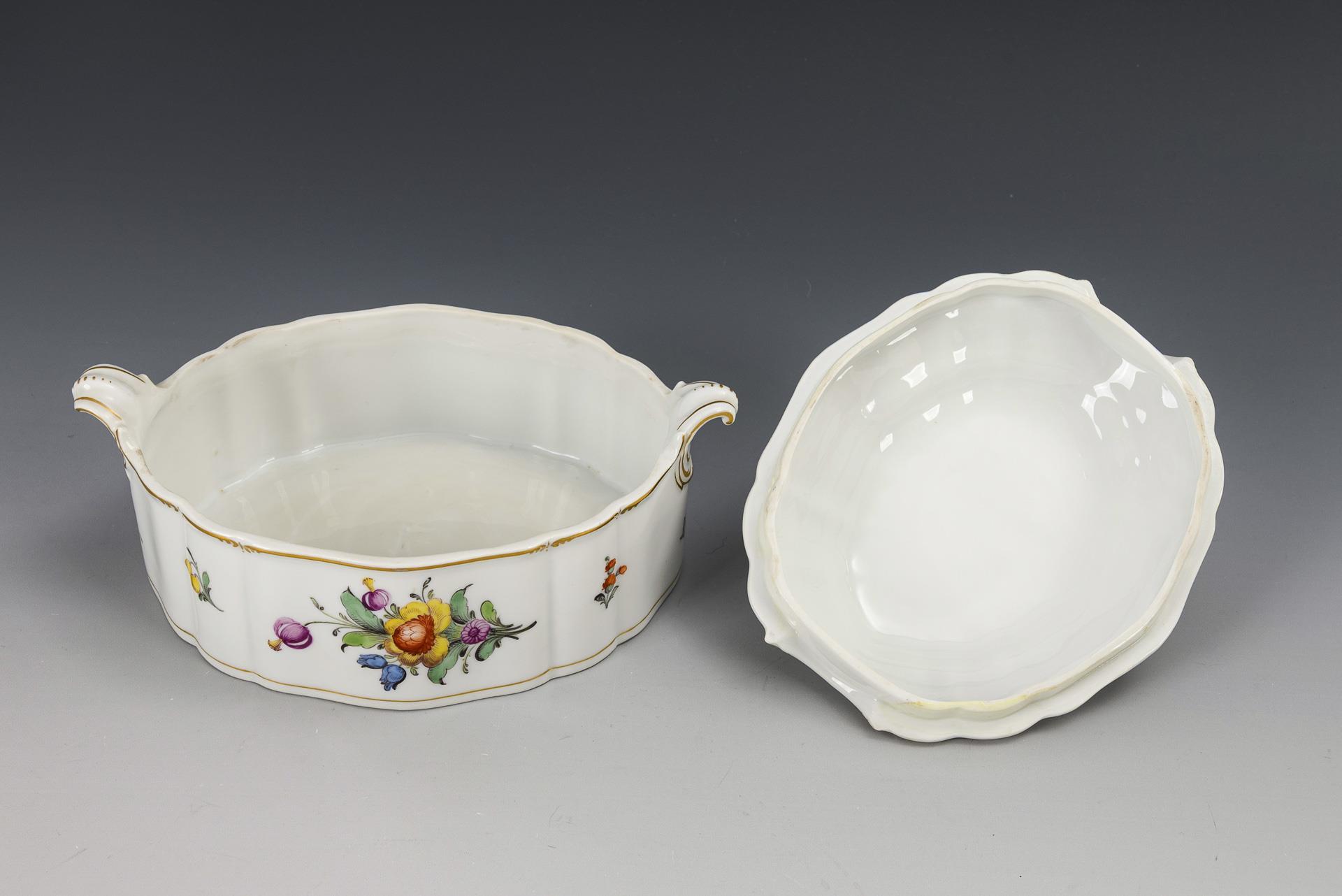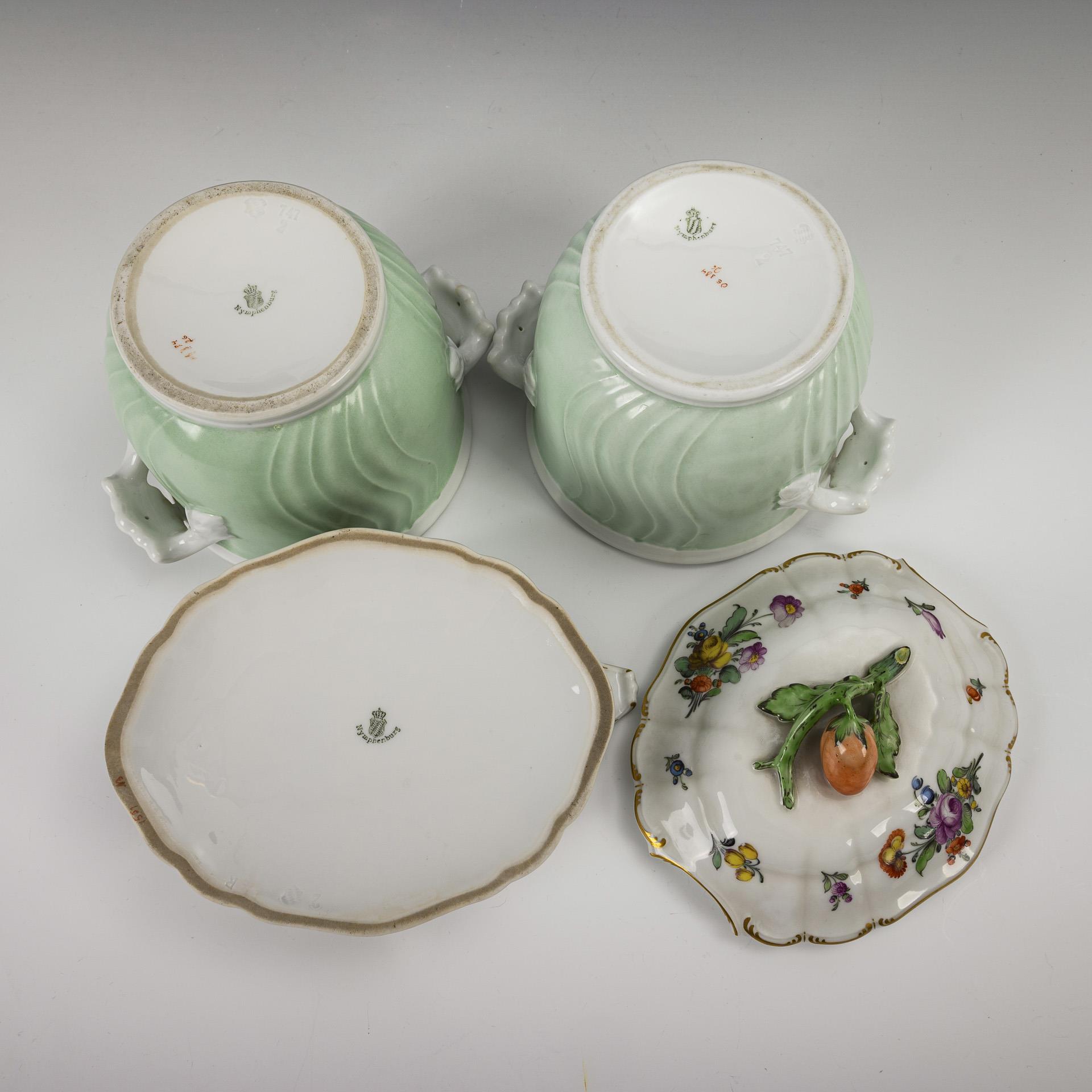 2 cachepots and tin with fruit knob. Nymphenburg.