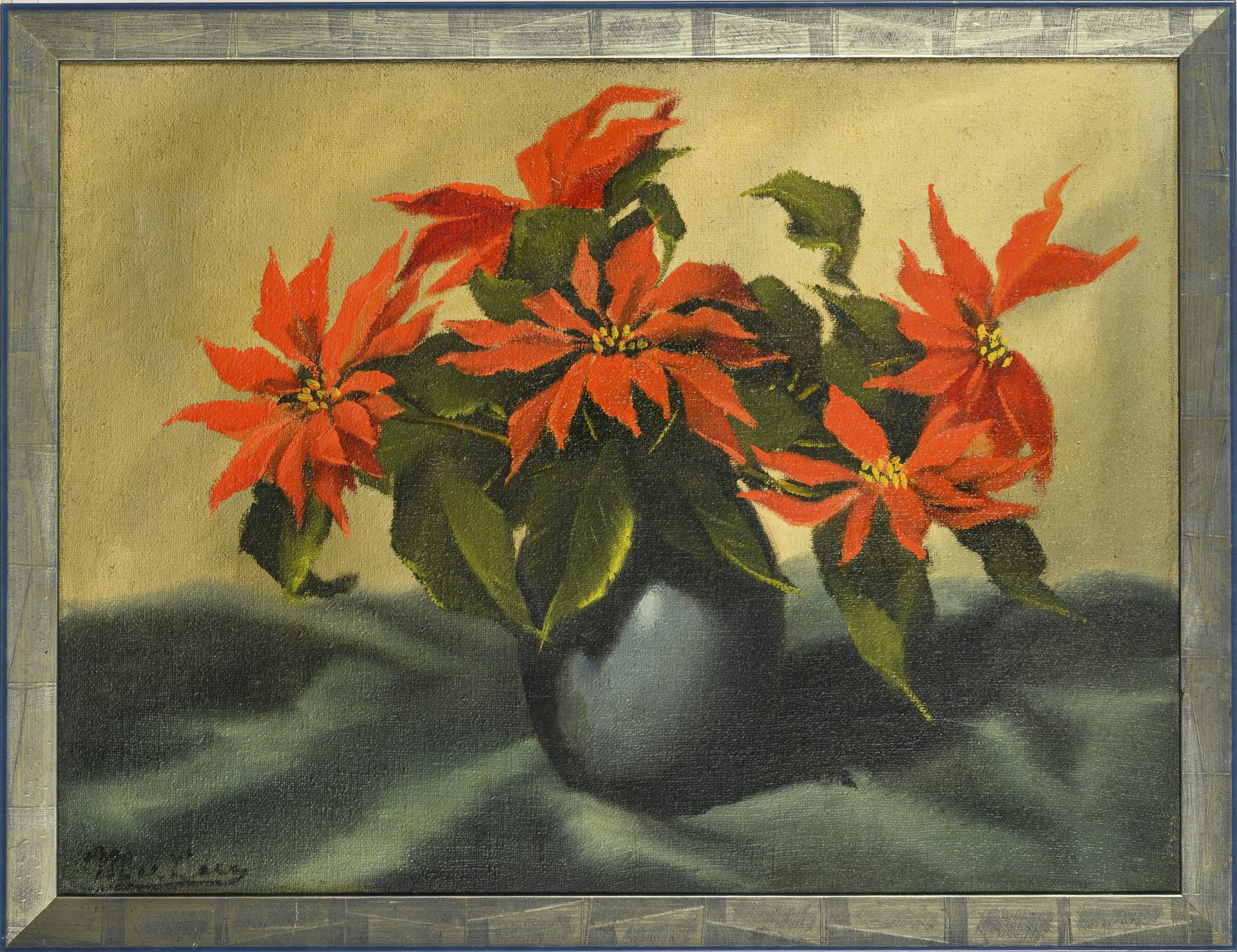 Indistinctly signed: Still life with poinsettia
