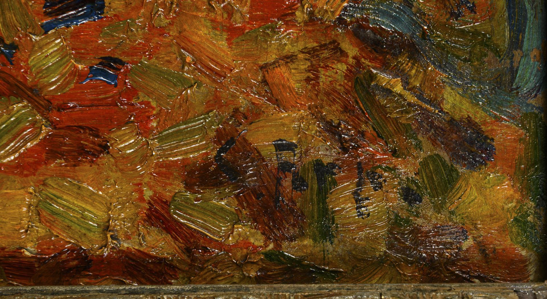 Oil/painting cardboard. Signed lower right, verso inscribed/titled with the addition Weimar. (18)98.