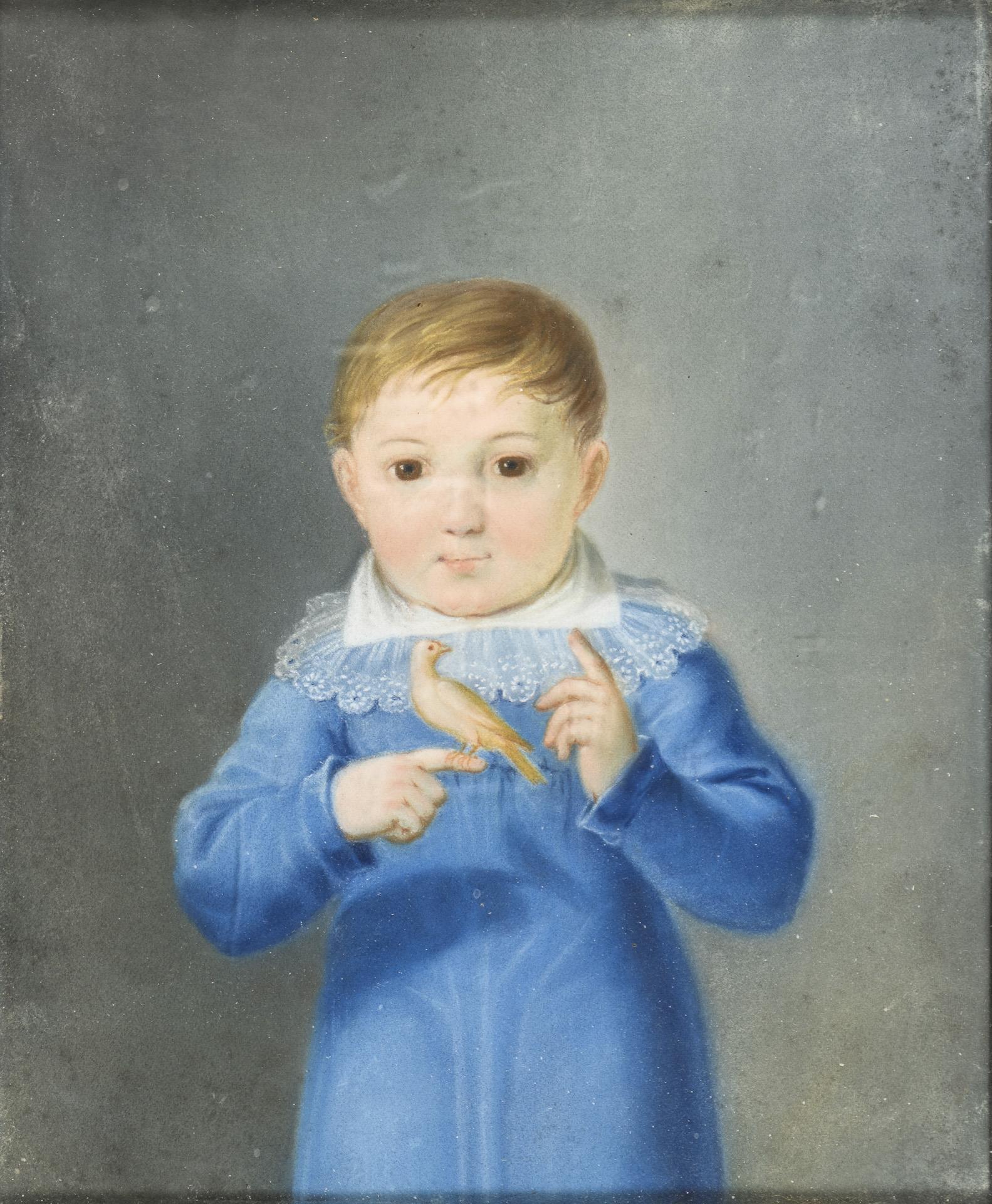 Biedermeier portrait of a boy with birds