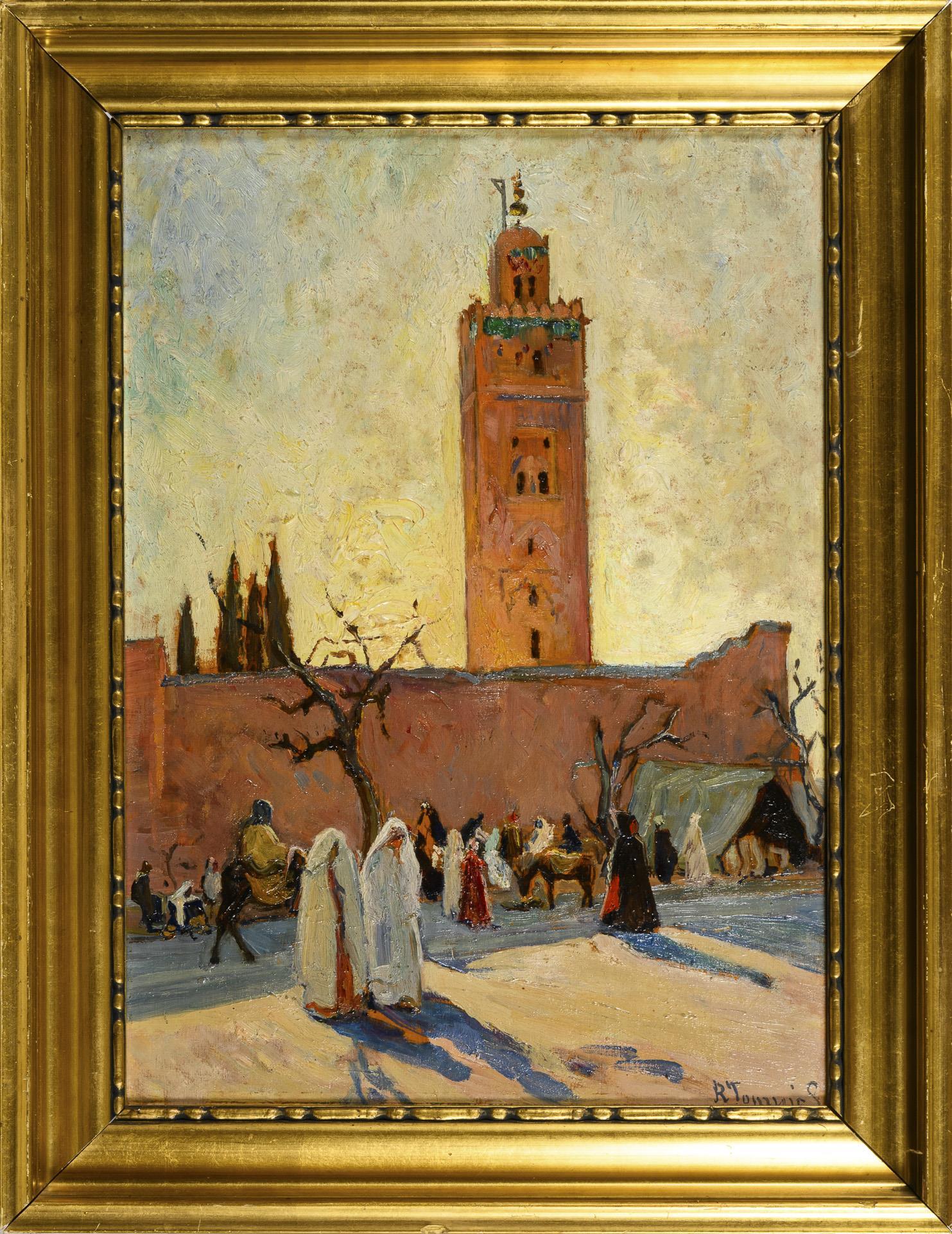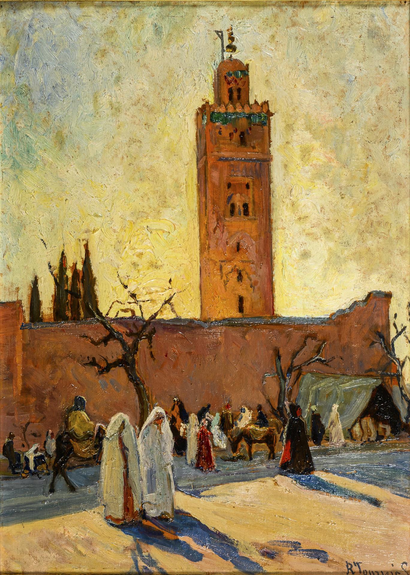 Indistinctly signed: In front of the Koutoubia Mosque in Marrakech