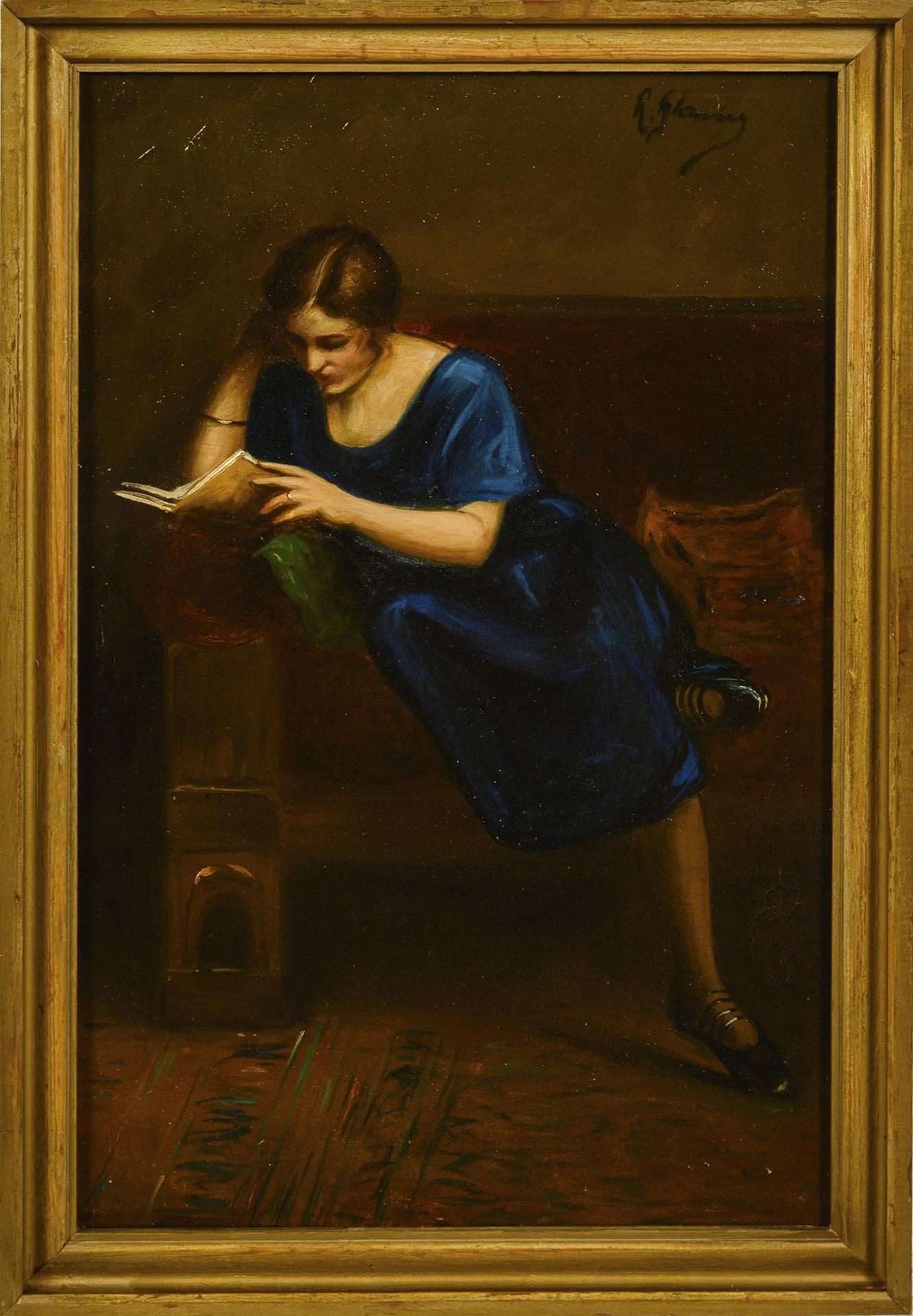 Indistinctly signed: Reading lady