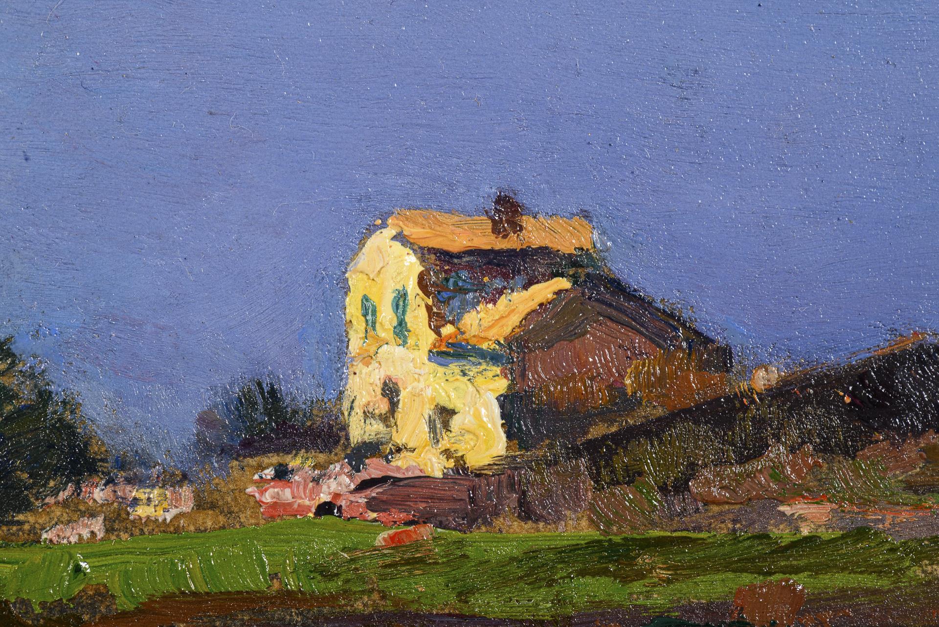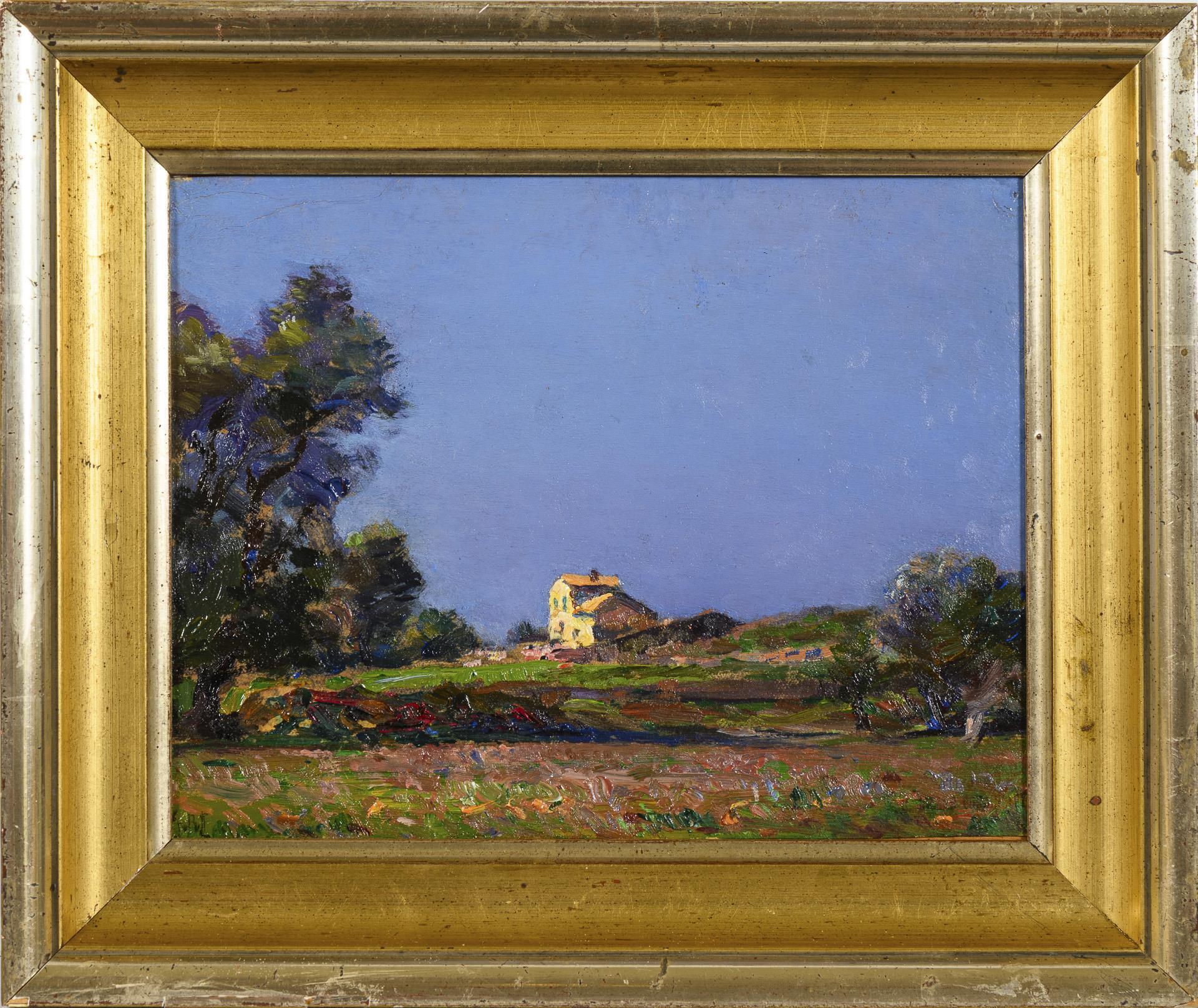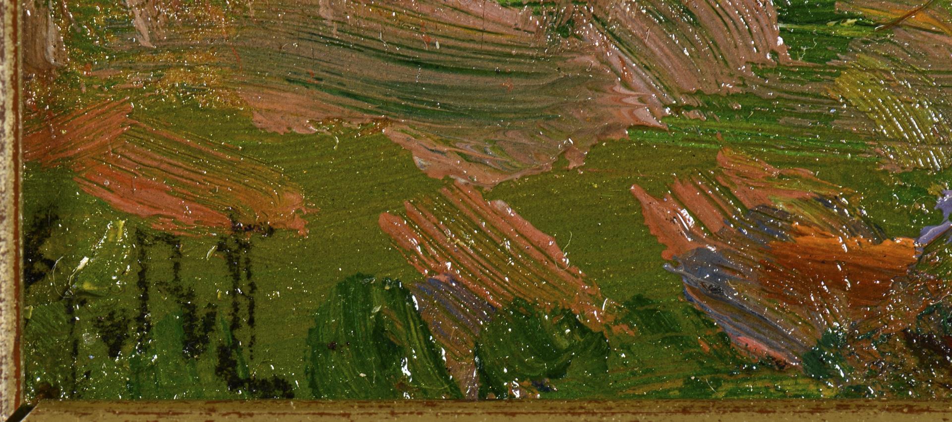 Oil/painting cardboard/wood. Monogrammed lower left, signature stamp lower right, artist's stamp verso.