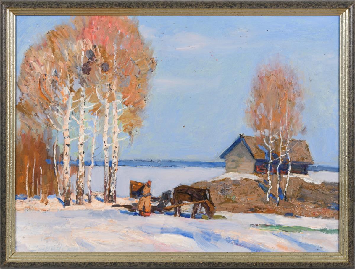 Russische Winterlandschaft mit Bauer