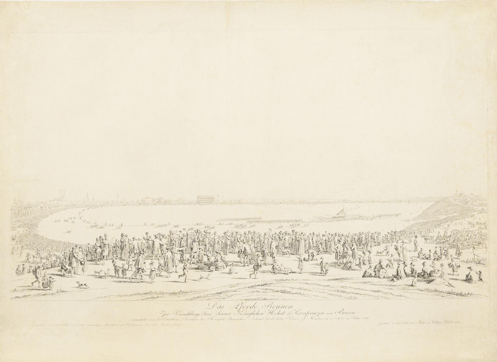 "Zur Vermählungs-Feier Seiner Königlichen Hoheit des Kronprinzen von Baiern veranstaltet von der Cavallerie - Division der Königlich Baierischen Nationalgarde dritter Klasse zu München am 17. October im Jahre 1810". Collection stamp "A.R" in a circle on the reverse and reference to the catalog raisonné "Goedl-Roth 20". Signs of age, somewhat soiled in the margins.