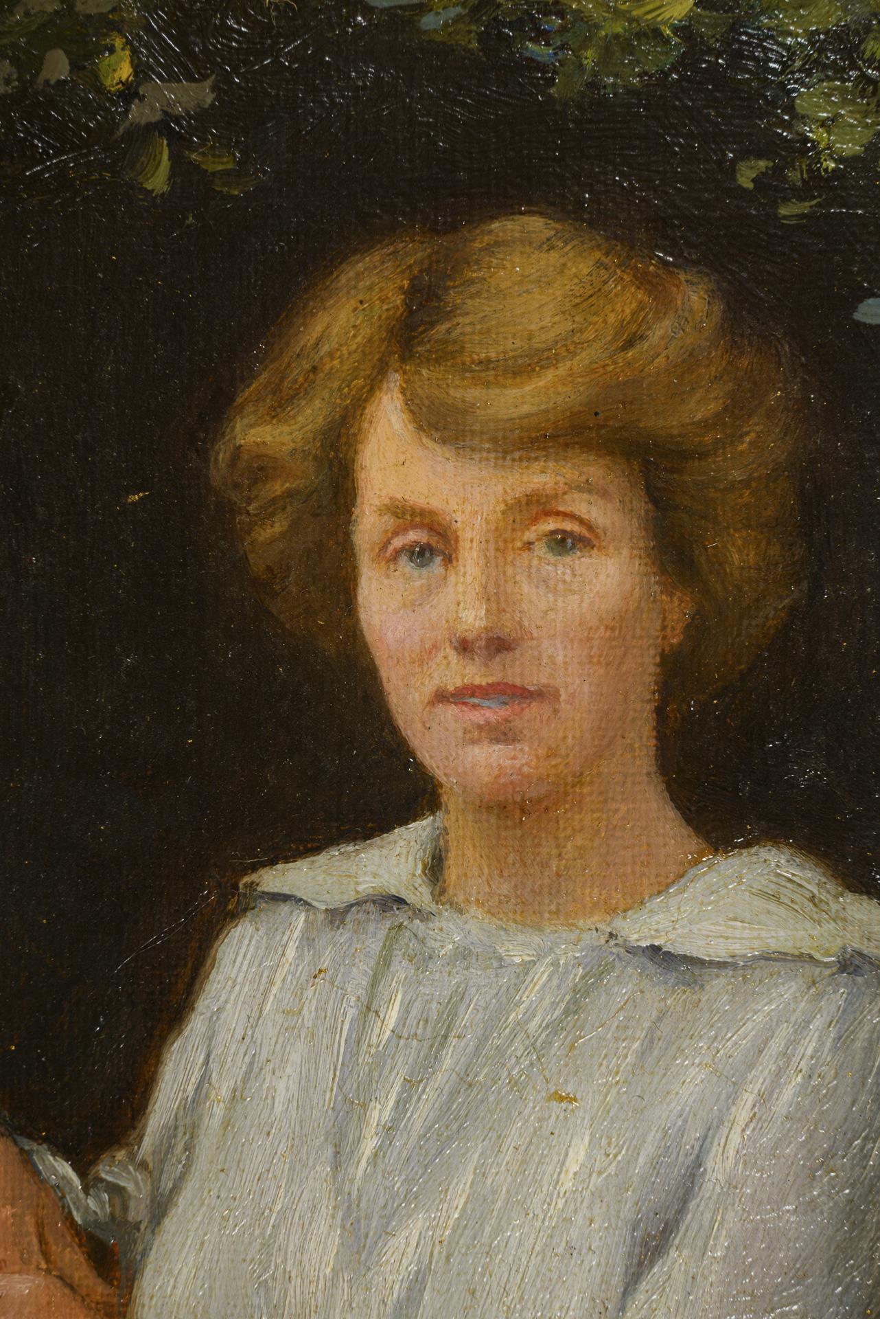 Danish painter: Portrait of a woman sitting in a garden